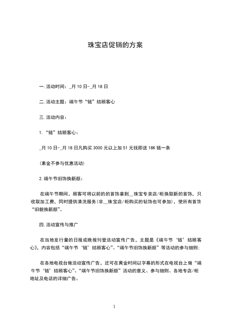 在当地发行量的日报或晚报刊登活动宣传广告,主题是《端午节‘链’结顾客心》,内容包括“端午节‘链’结顾客心”、“端午节旧饰换新颜”等活动的参与细则;