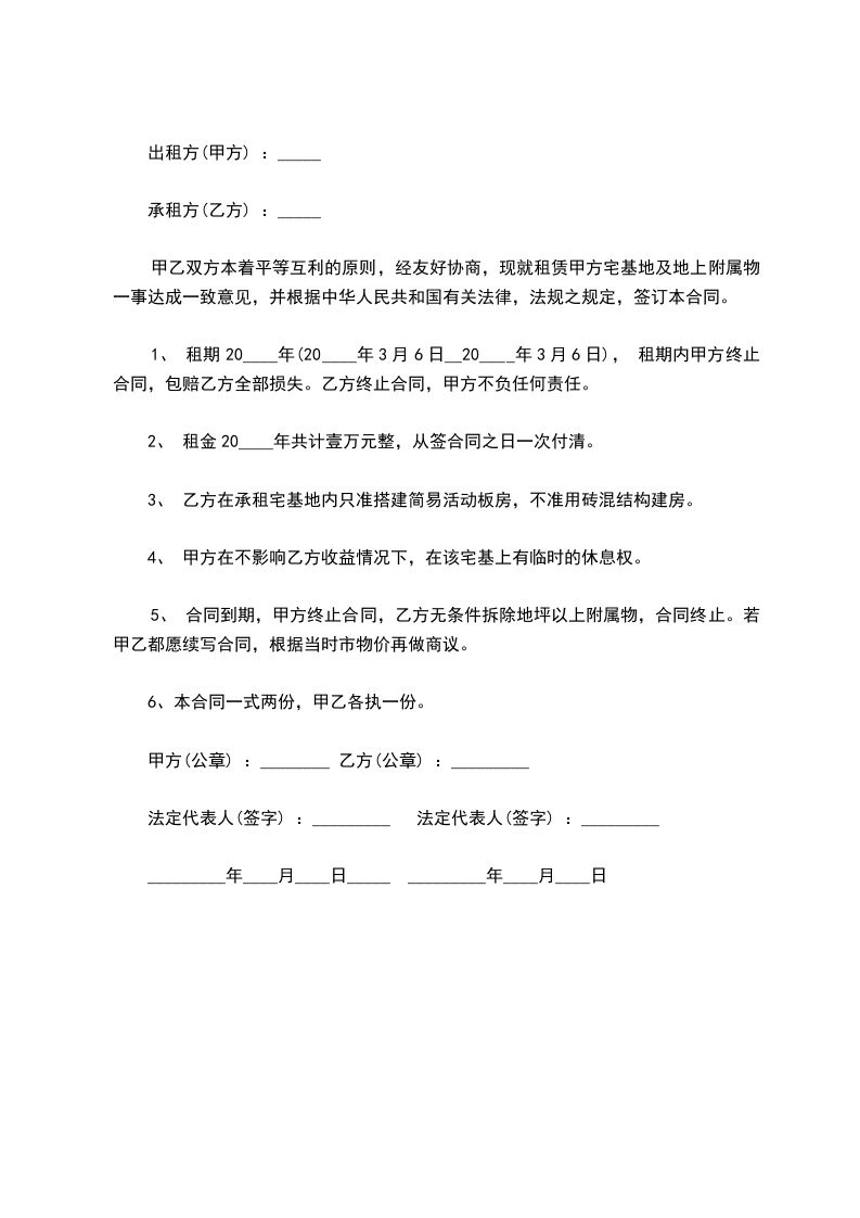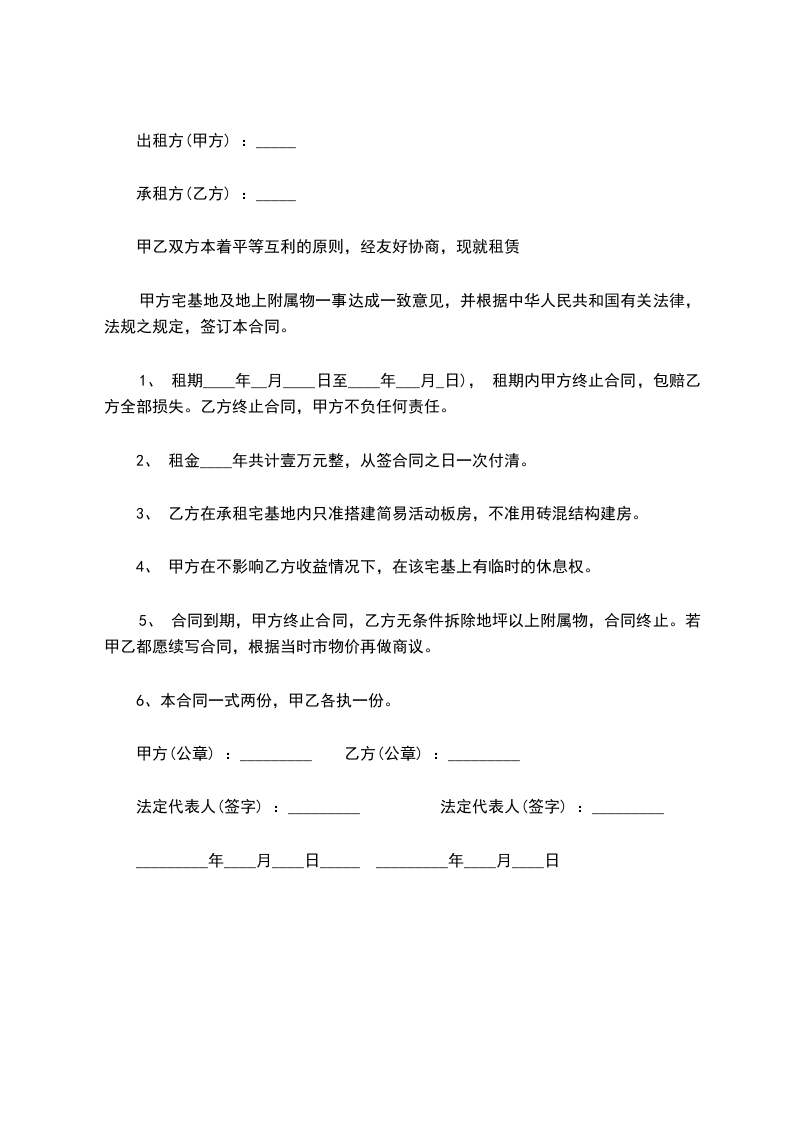 甲乙双方本着平等互利的原则,经友好协商,现就租赁甲方宅基地及房产一事达成一致意见,并根据中华人民共和国有关法律,法规之规定,签订本合同。