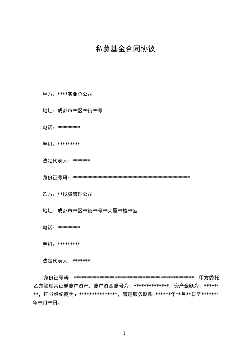 身份证号码:*********************************************** 甲方委托乙方管理其证券账户资产,账户资金账号为:**************,资产金额为:********,证券经纪商为:***************,管理服务期限:******年**月**日至*******年**月**日。