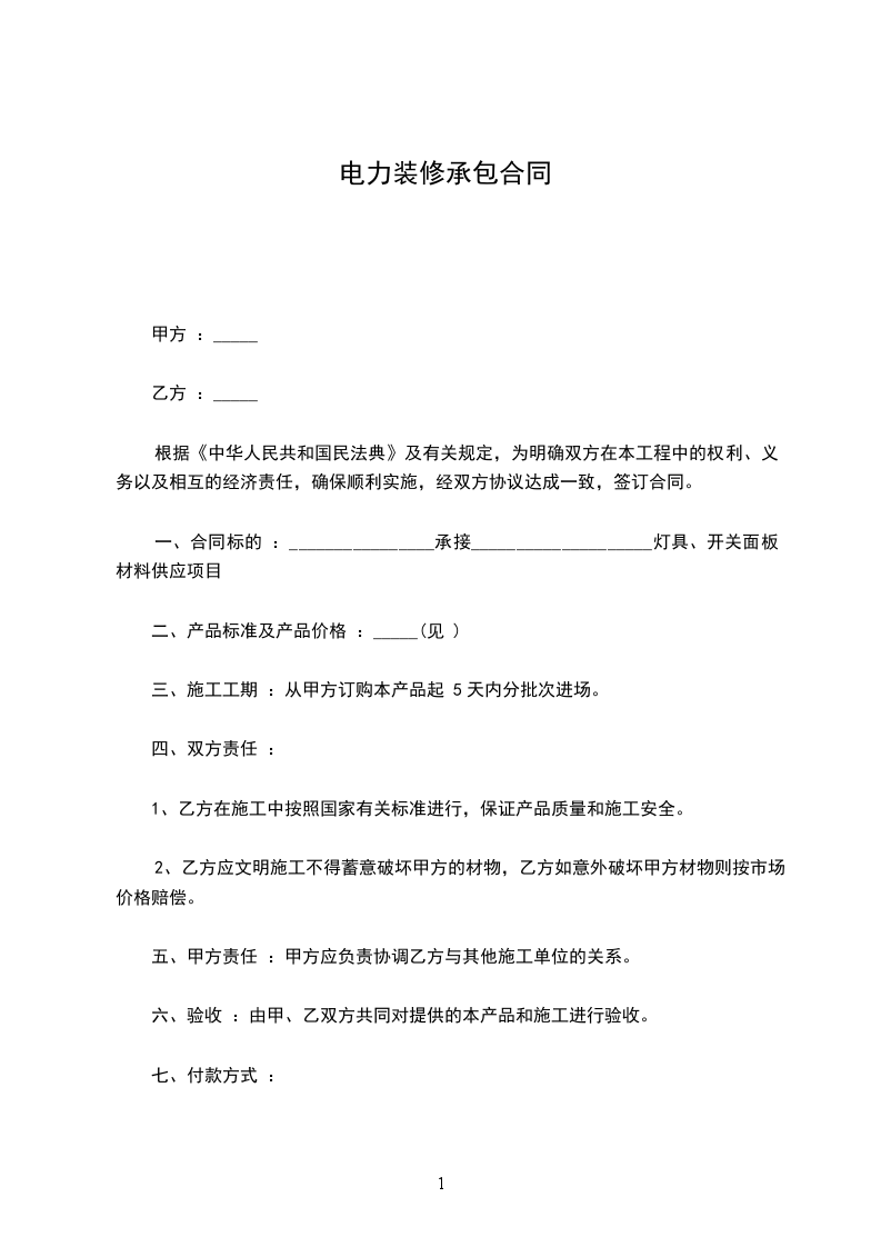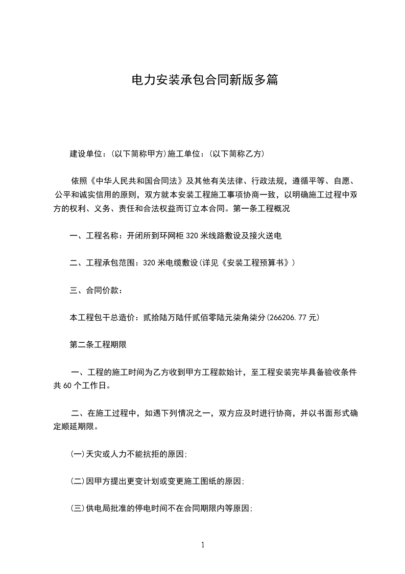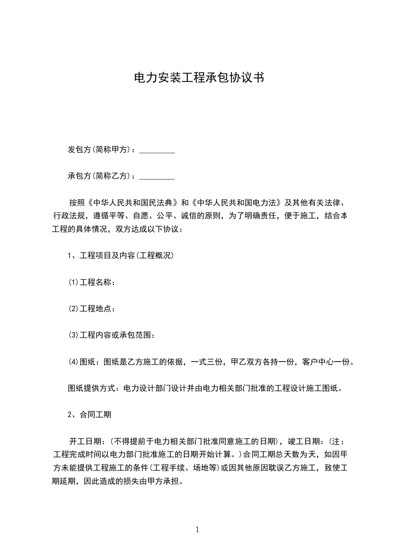 按照《中华人民共和国民法典》和《中华人民共和国电力法》及其他有关法律、行政法规,遵循平等、自愿、公平、诚信的原则,为了明确责任,便于施工,结合本工程的具体情况,双方达成以下协议: