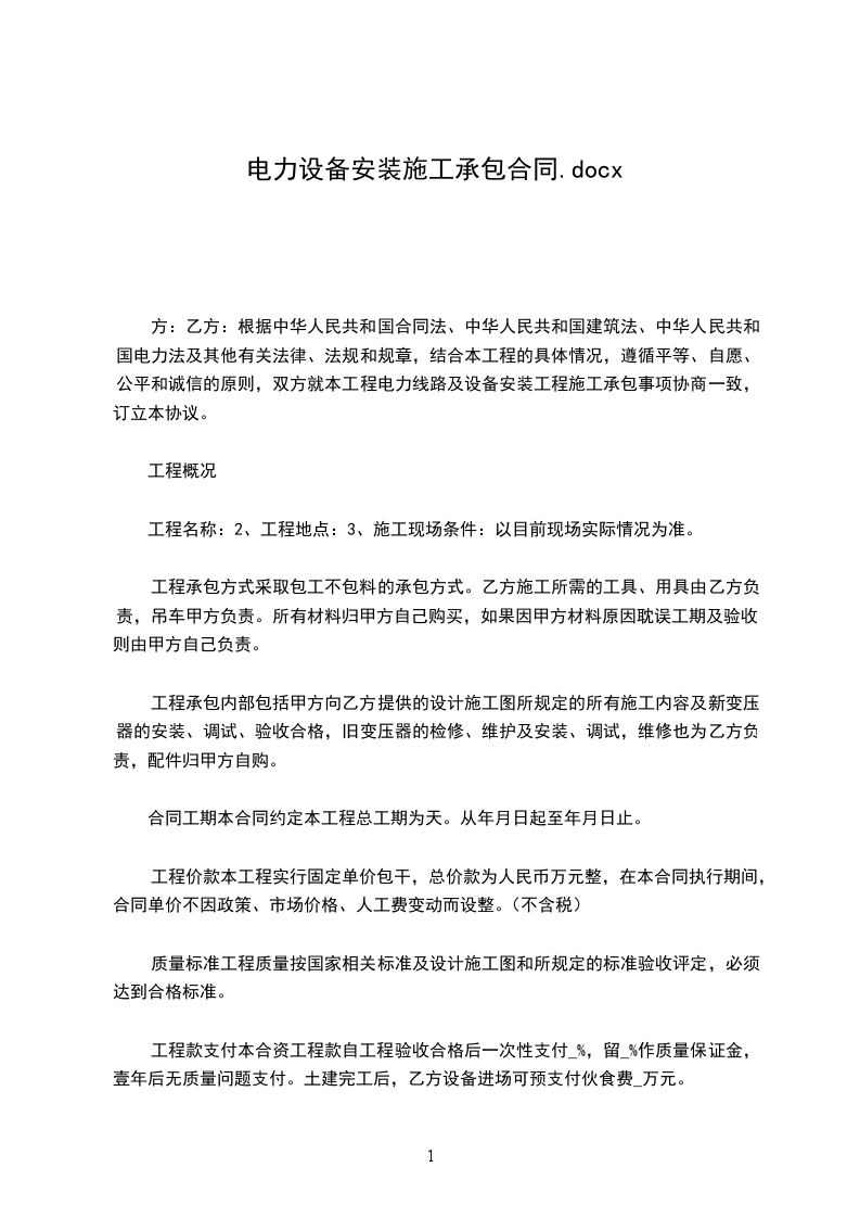 (3) 乙方安装完毕,经设备可正常用电,经相关部门验收合格,甲方在 年 月 日前付清剩余 元(大写: 整 )