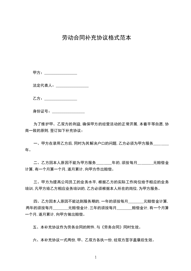 六、本补充协议一式两份,甲、乙双方各执一份,经双方签字盖章后生效。