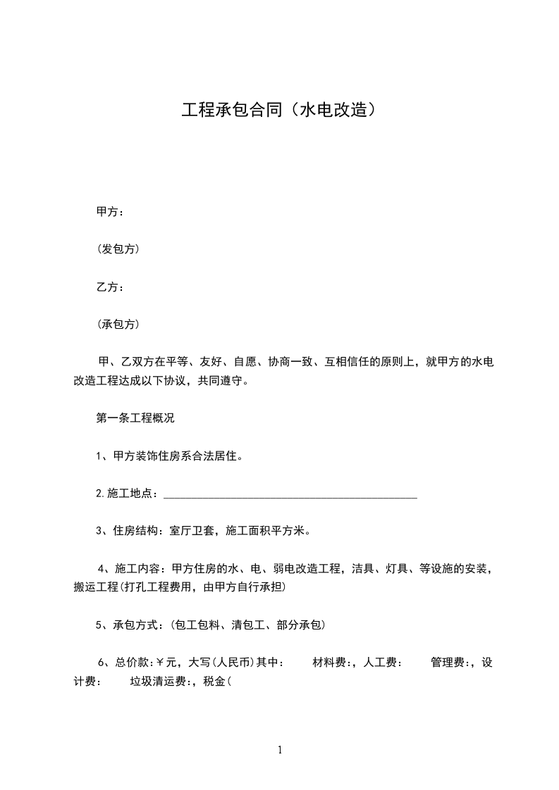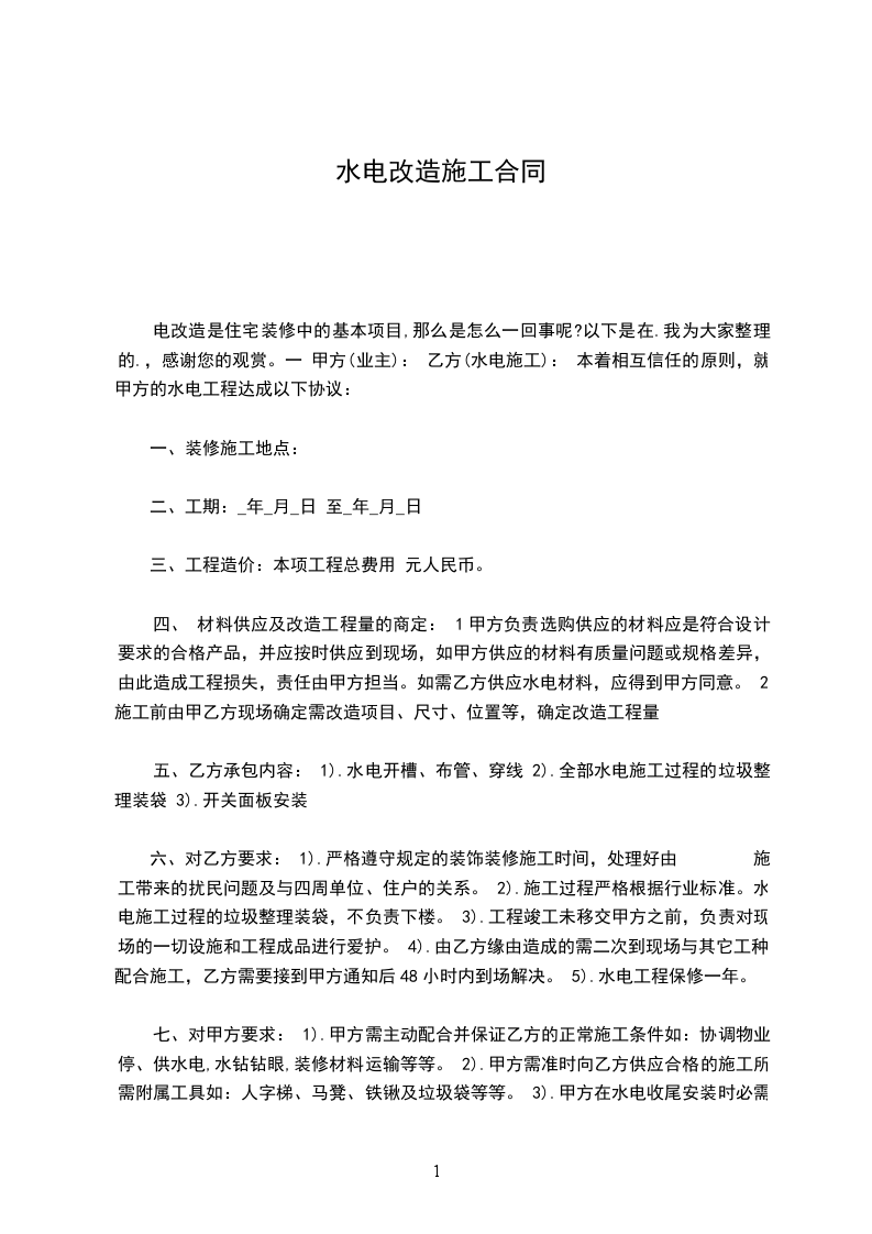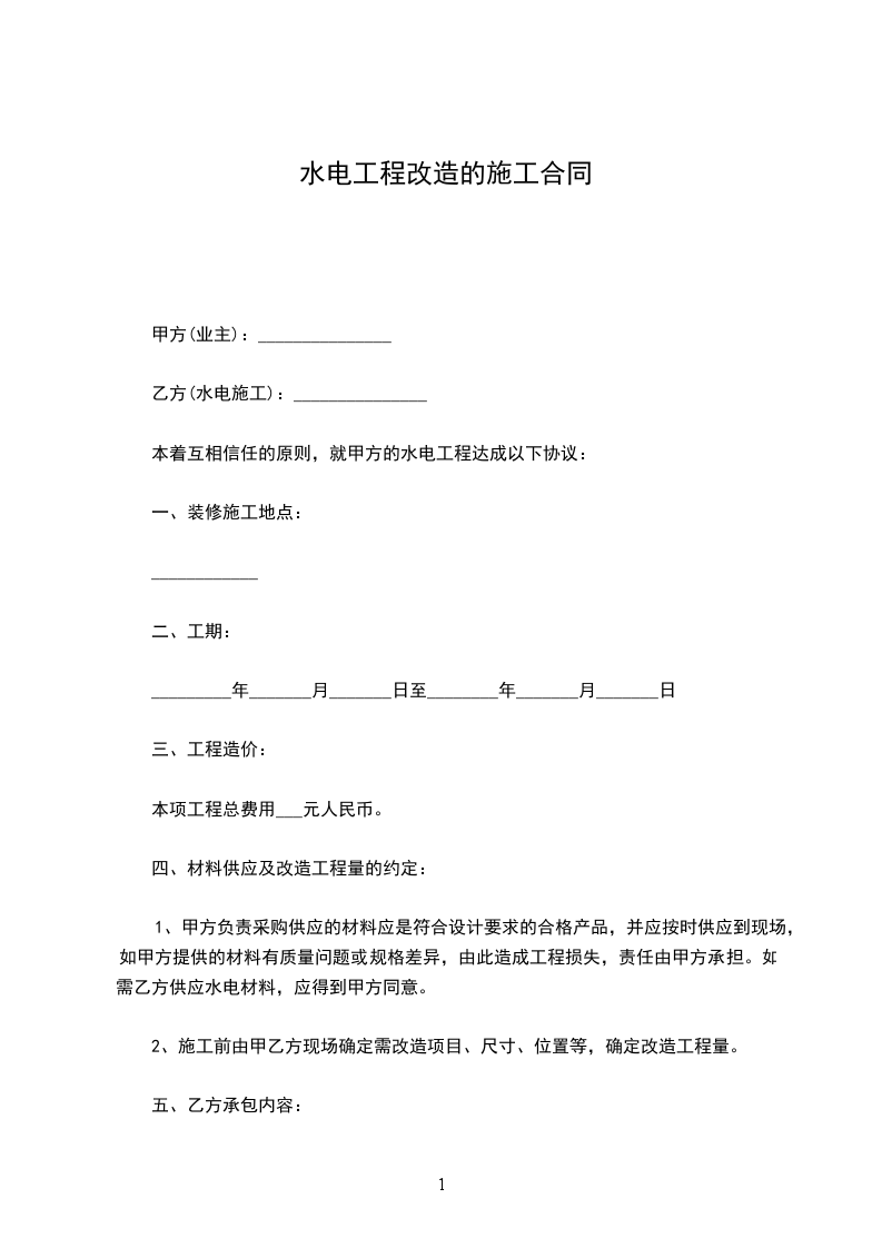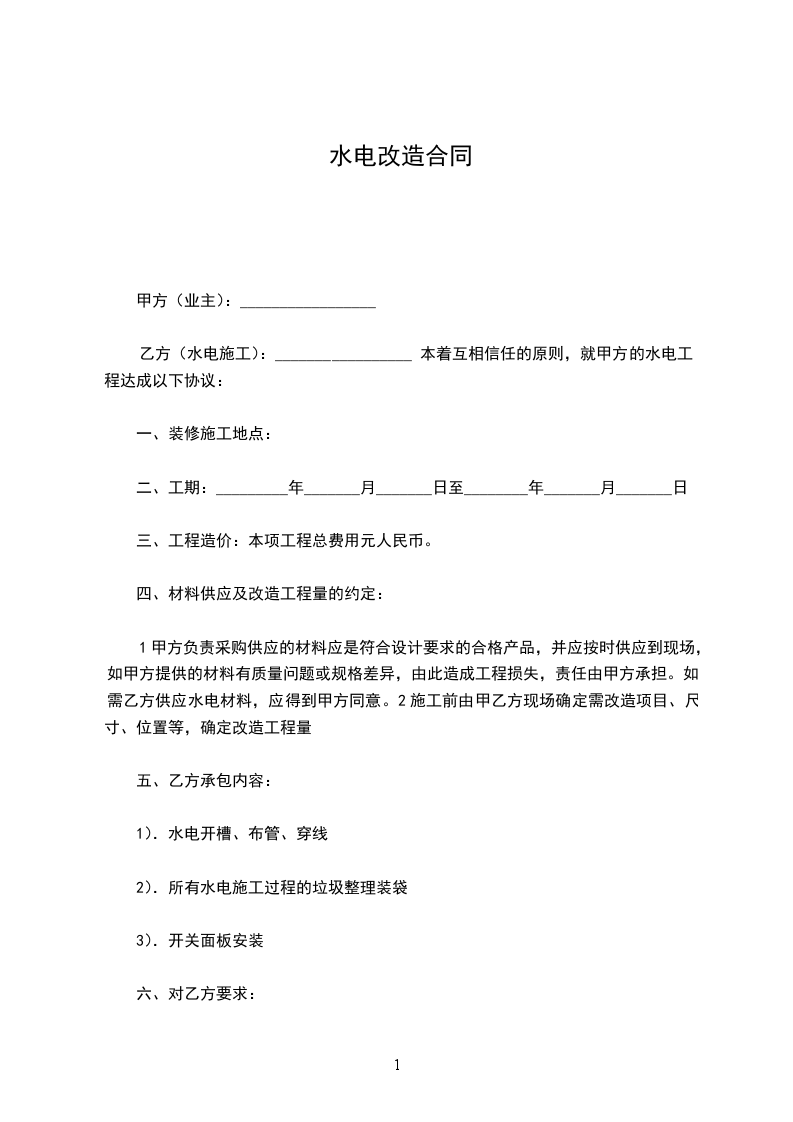 本着互相信任的原则,就甲方的水电工程达成以下协议: