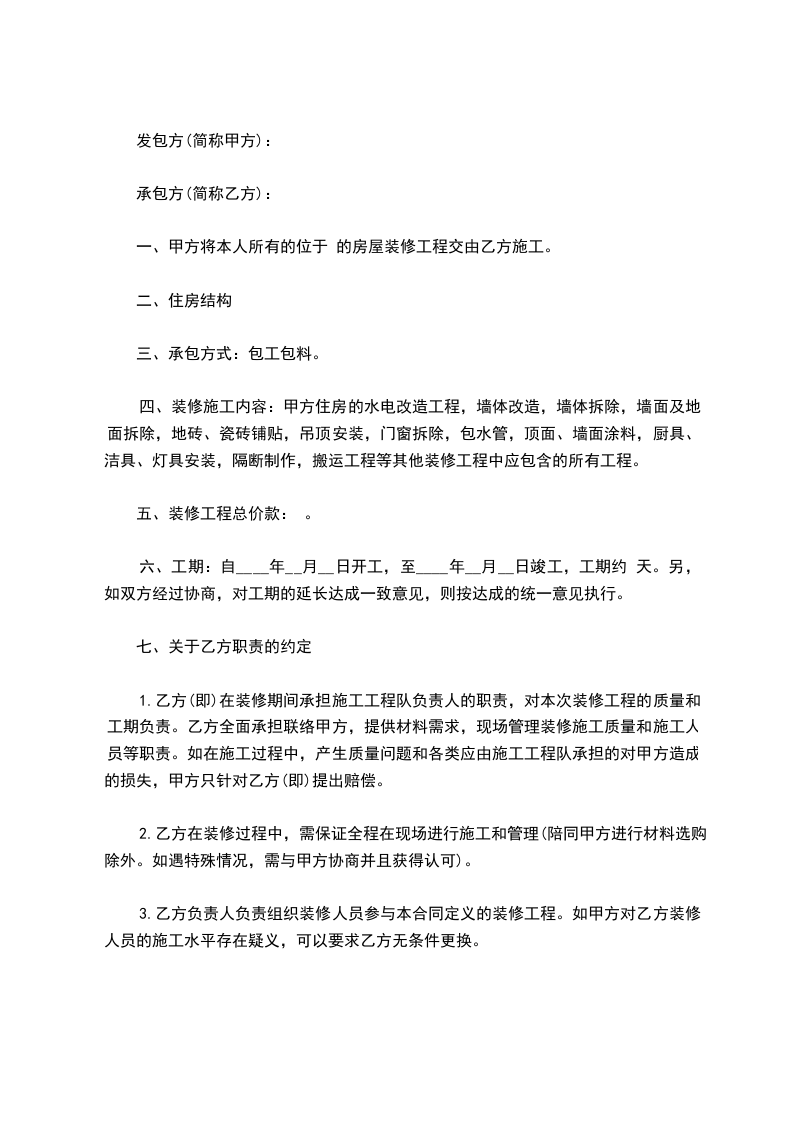 1)、甲方需积极配合并保证乙方的正常施工条件如:协调物业停、供水电,水钻钻眼,装修材料运输等等。