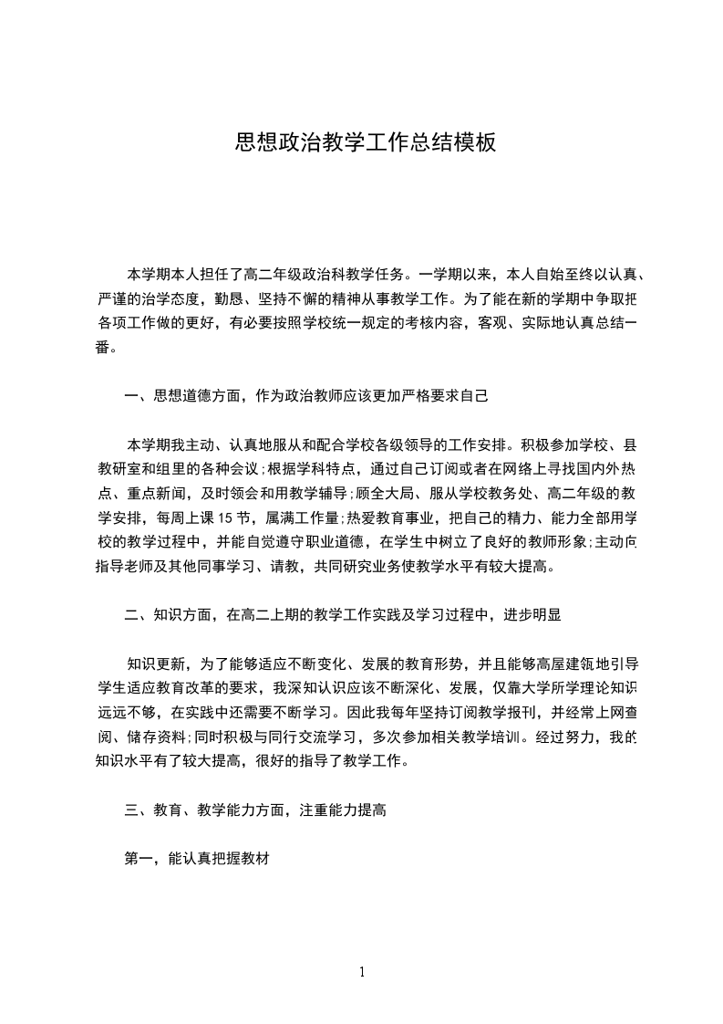 本学期本人担任了高二年级政治科教学任务。一学期以来,本人自始至终以认真、严谨的治学态度,勤恳、坚持不懈的精神从事教学工作。为了能在新的学期中争取把各项工作做的更好,有必要按照学校统一规定的考核内容,客观、实际地认真总结一番。