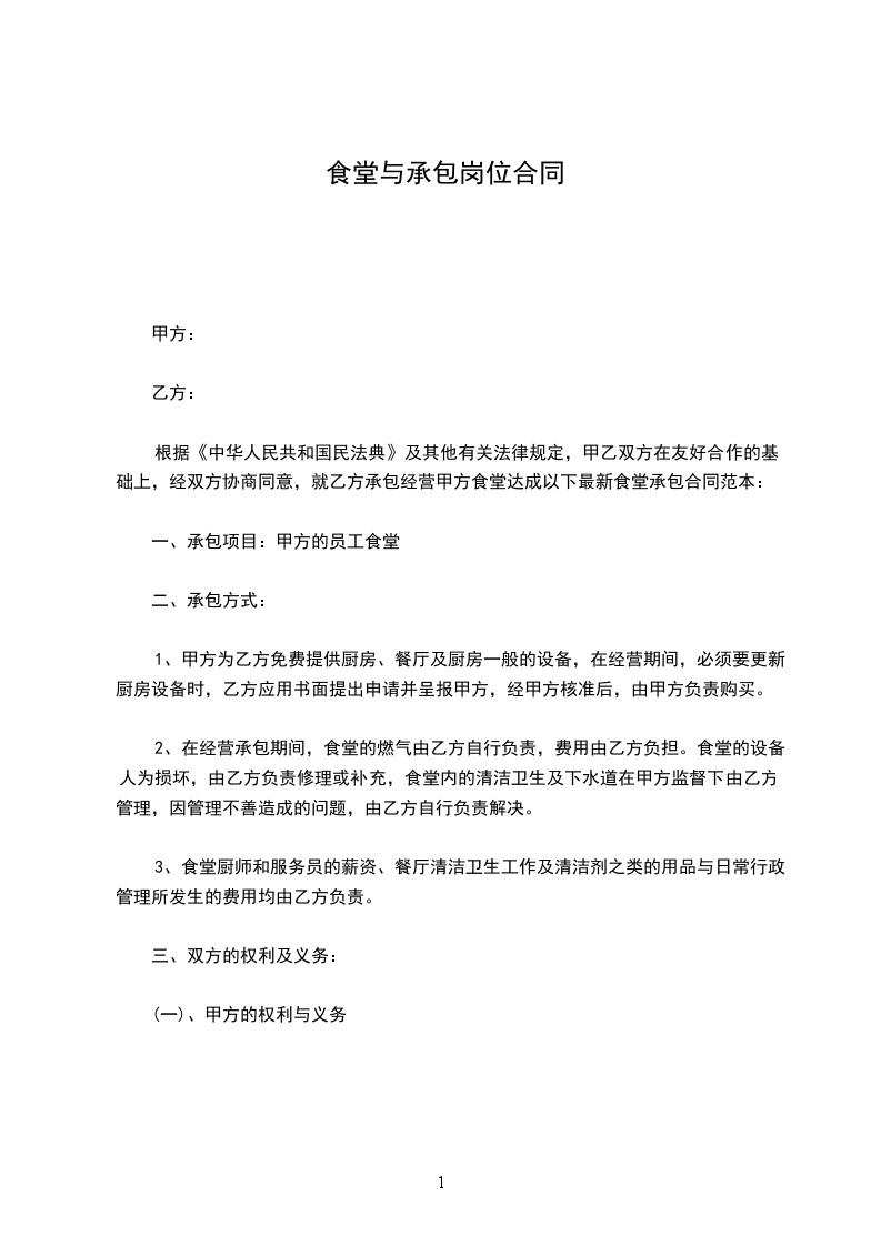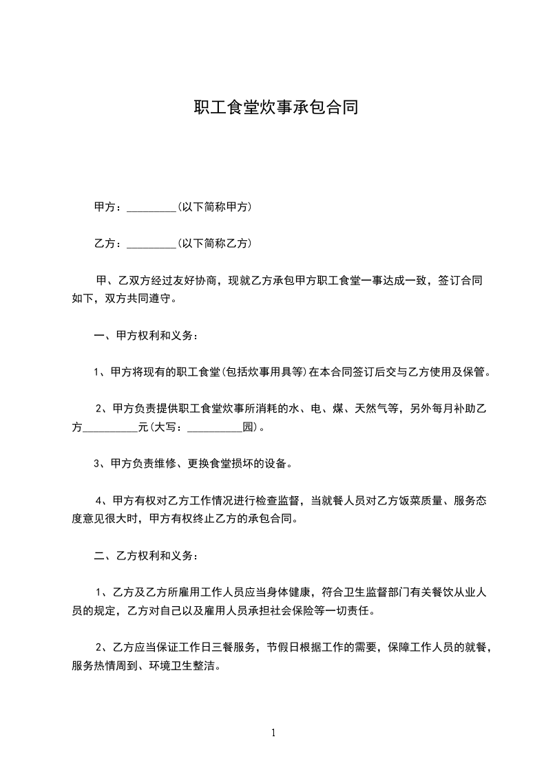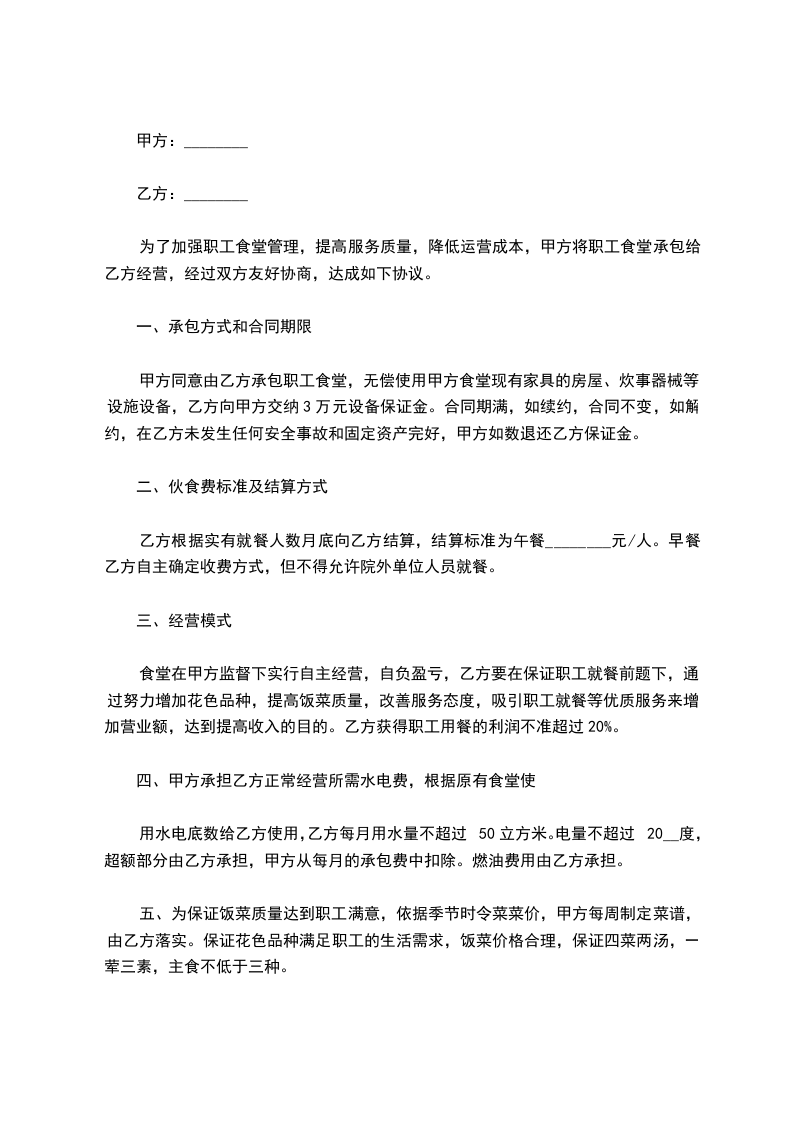 4、根据食堂工作情况和员工意见甲方有权采用其他方式进行食堂管理。