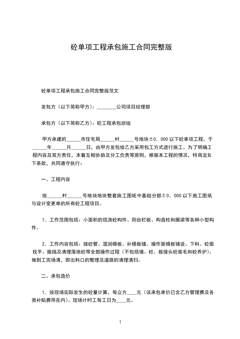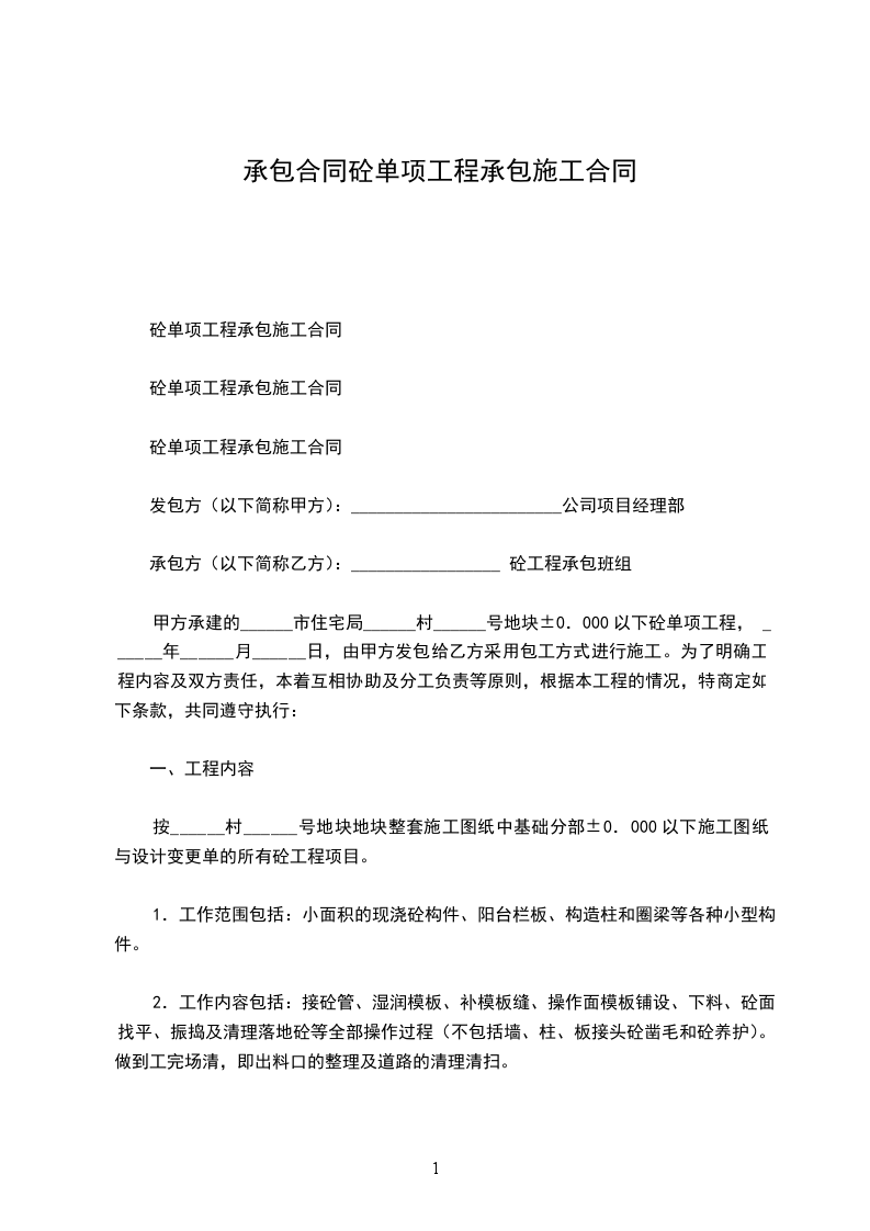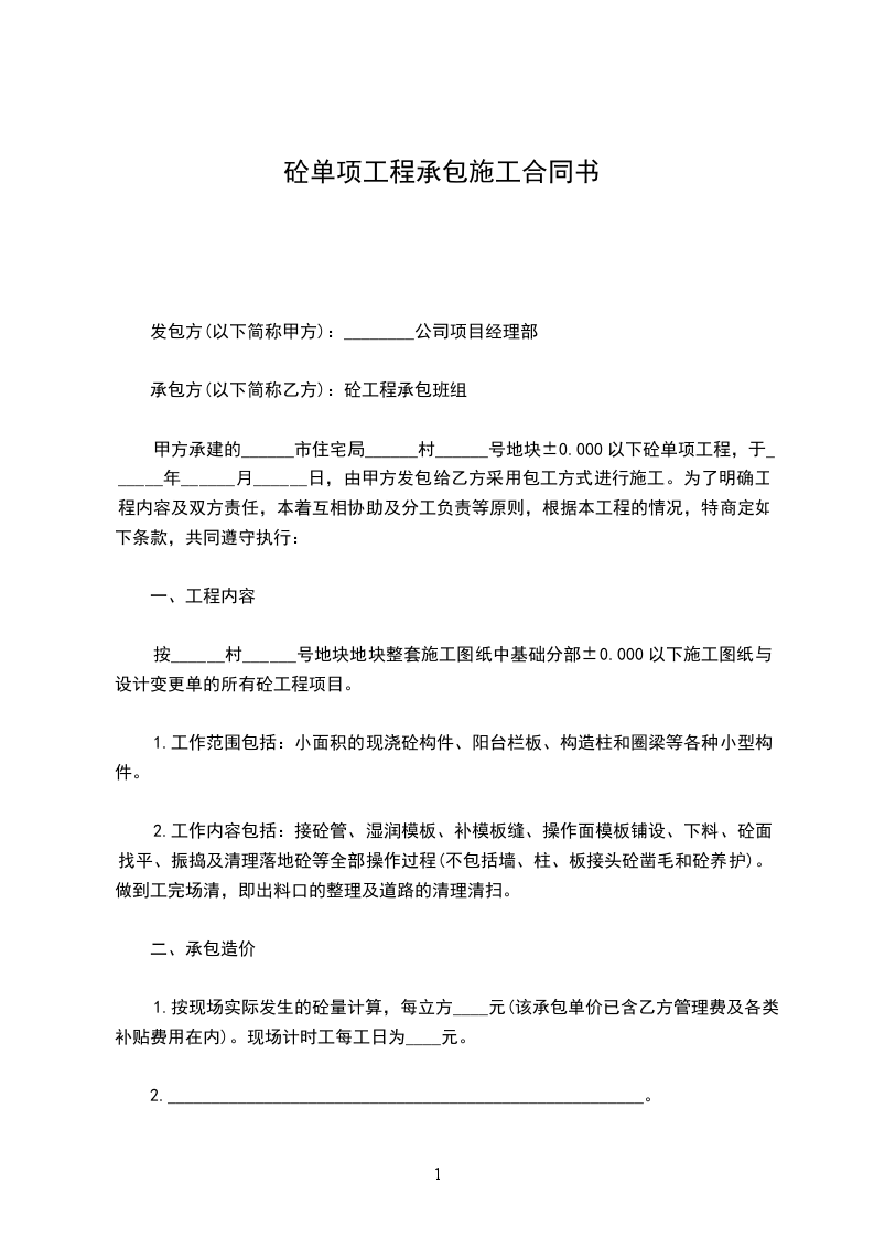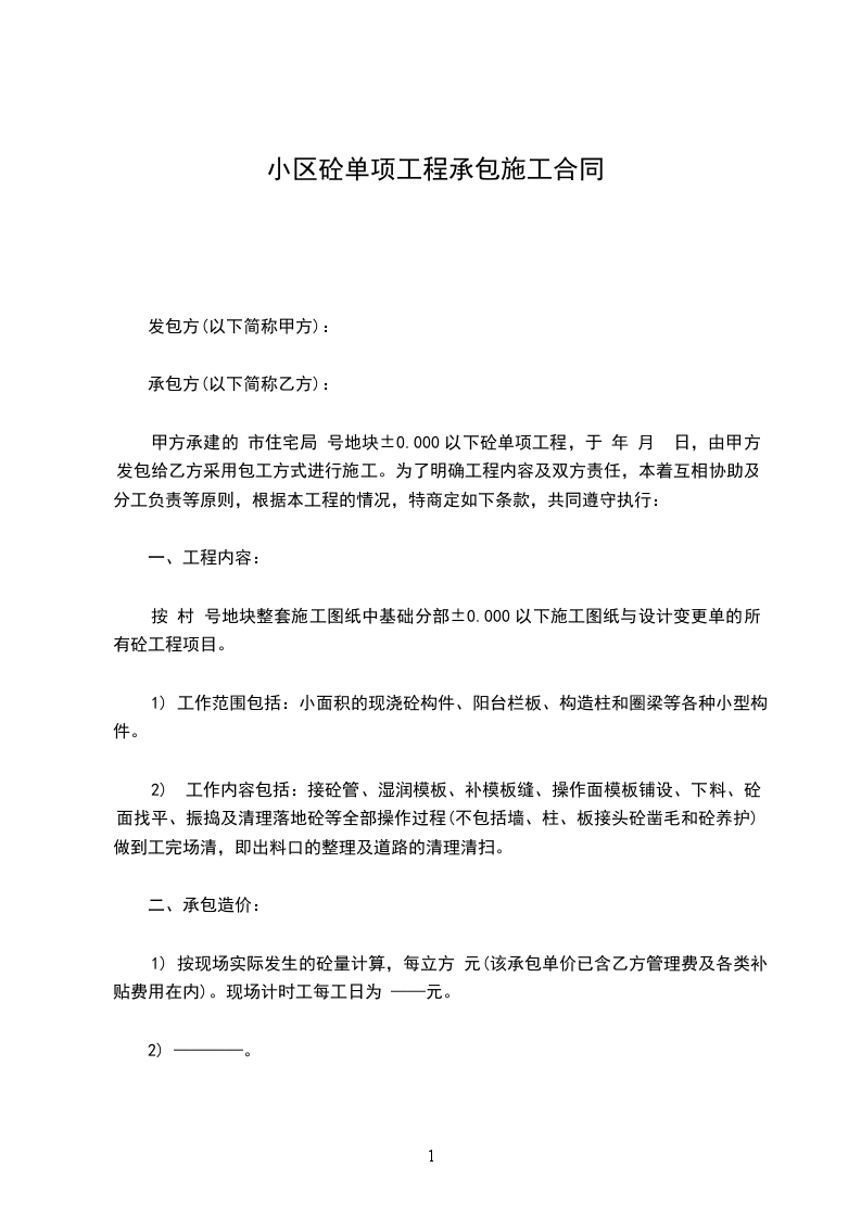 1)工作范围包括:小面积的现浇砼构件、阳台栏板、构造柱和圈梁等各种小型构件。