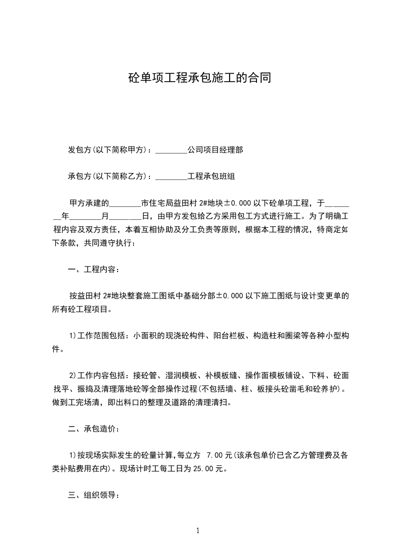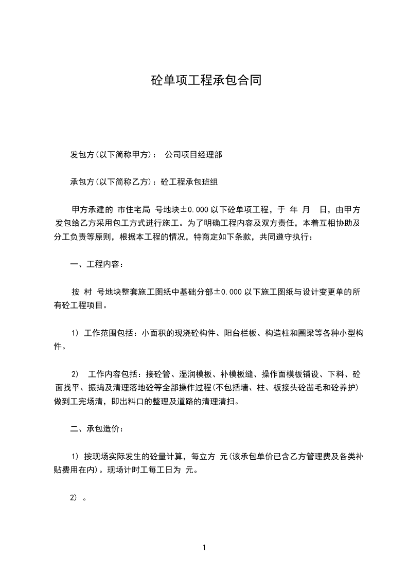 发包方(甲方):________公司项目经理部承包方(乙方):________砼工程承包班组