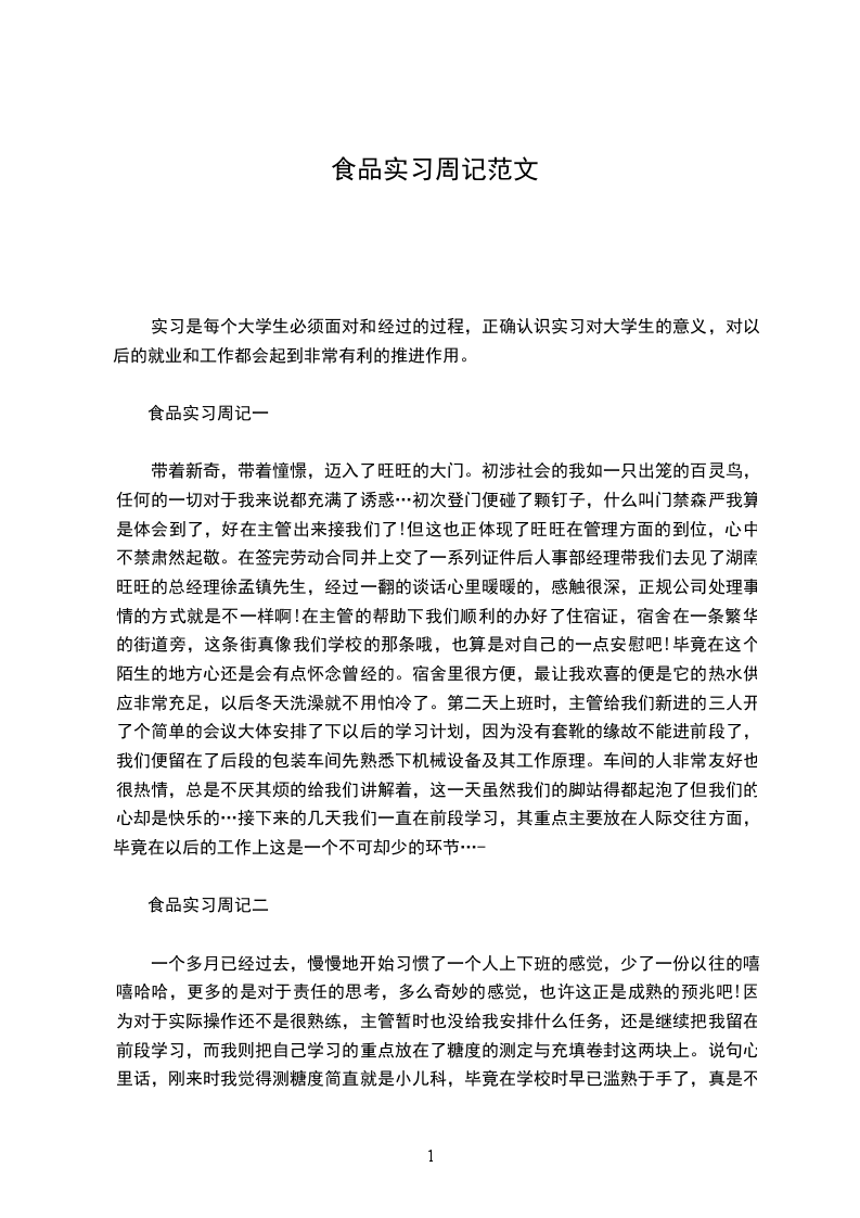 食品实习周记一