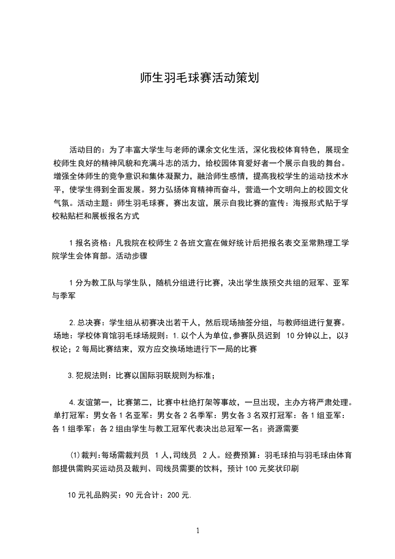 社联的制作海报宣传;裁判计分表、赛程安排表、积分表(羽协负责打印);比赛用球十二筒