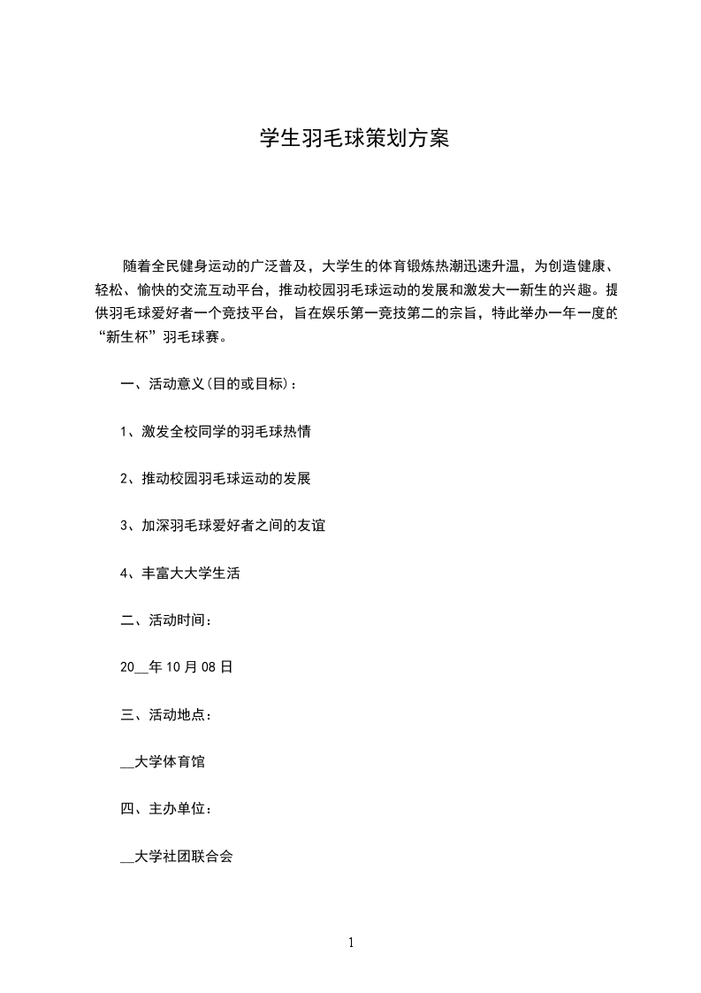 承办单位:__大学羽毛球协会