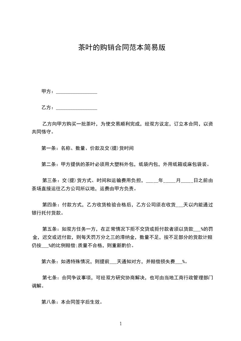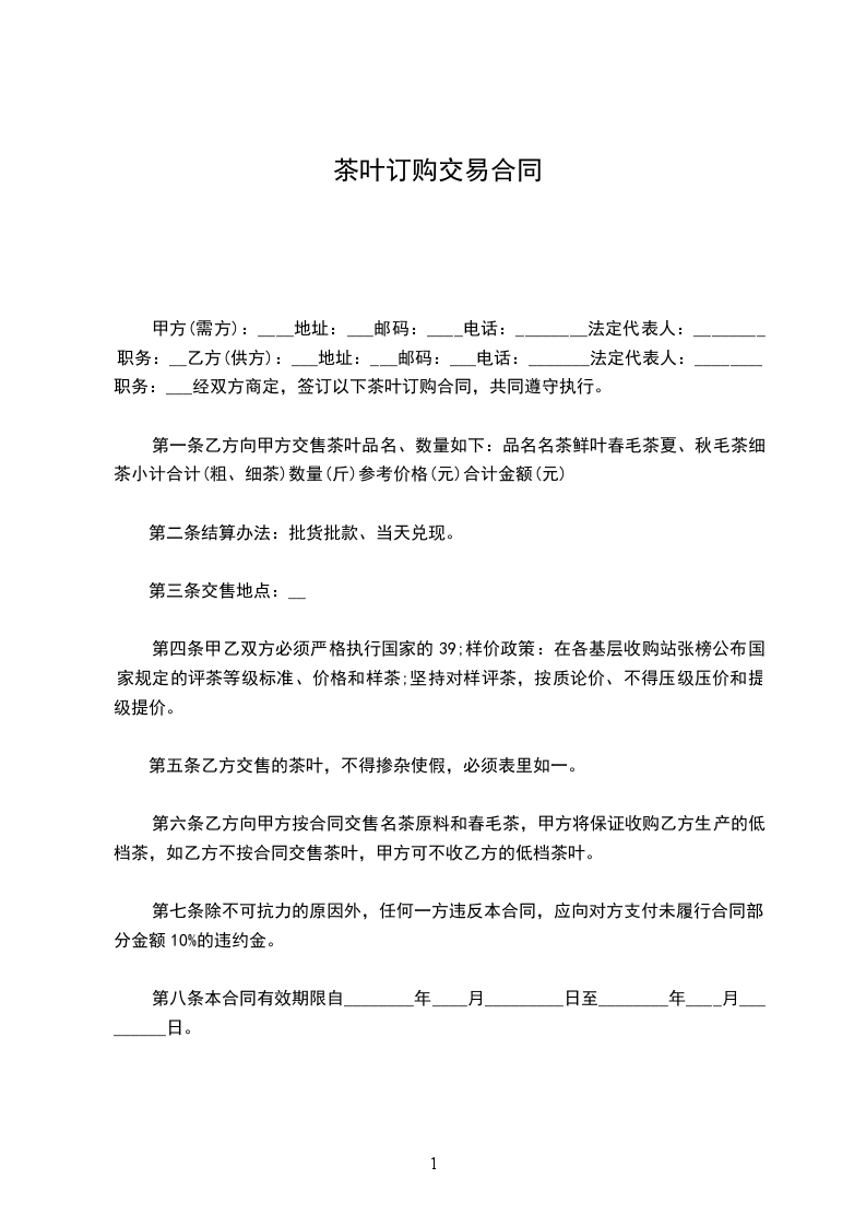 乙方向甲方购买一批茶叶,为使交易顺利完成,经双方议定,订立本合同,以资共同恪守。