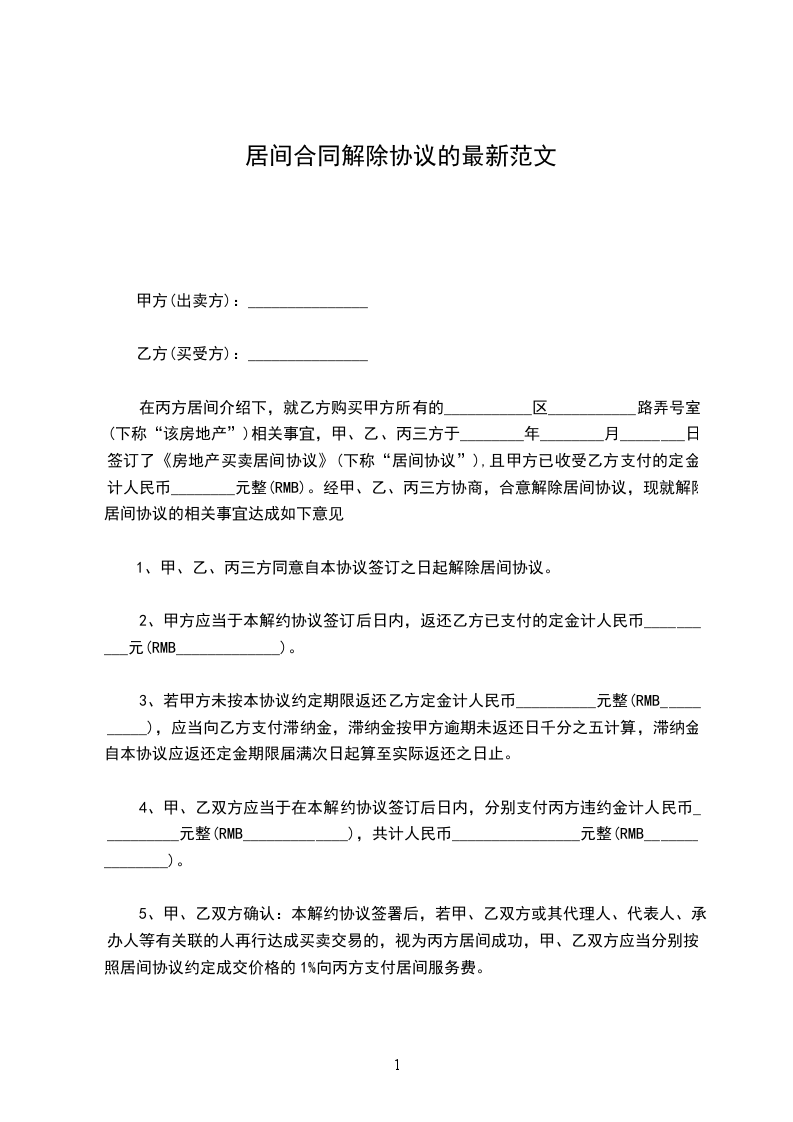 9.2 在签订本合同的同时丙方一次性收取居间服务费人民币______元,大写______, 由乙方承担。