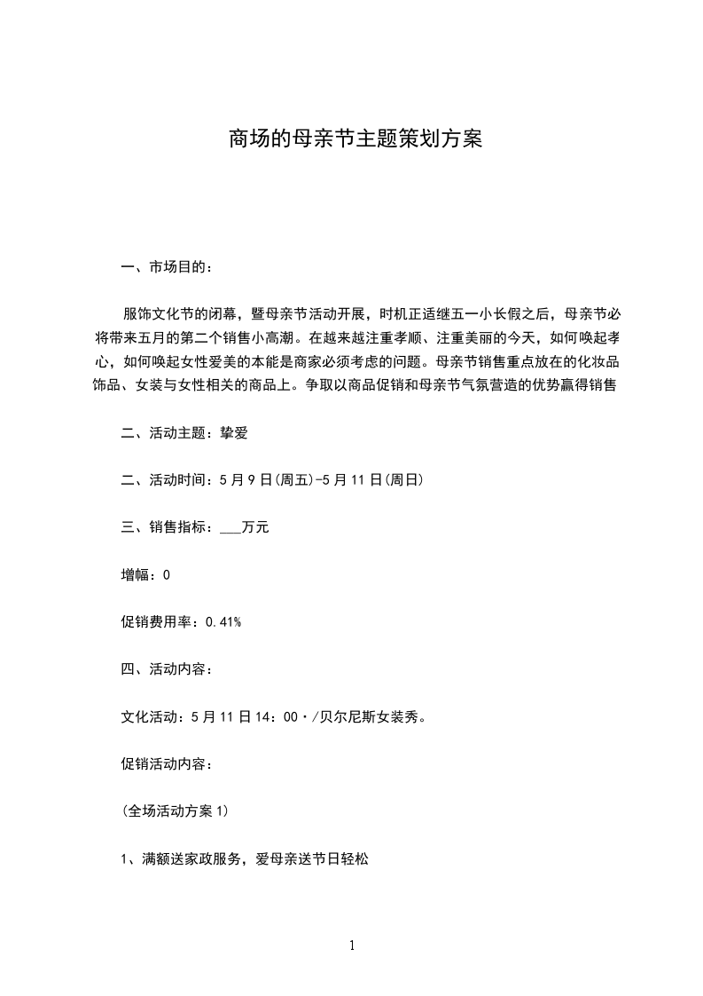 活动说明:推出一百款母亲节特价商品,形成一定气势。主要是吸引顾客走进柜台寻找,通过特价商品带动其他商品的销售。每个特价商品都要有pop提示“母亲节特价”。另外,可以由各个部门推荐一部分商品,提示“母亲节推荐”,从而使母亲节节日氛围更加浓郁。