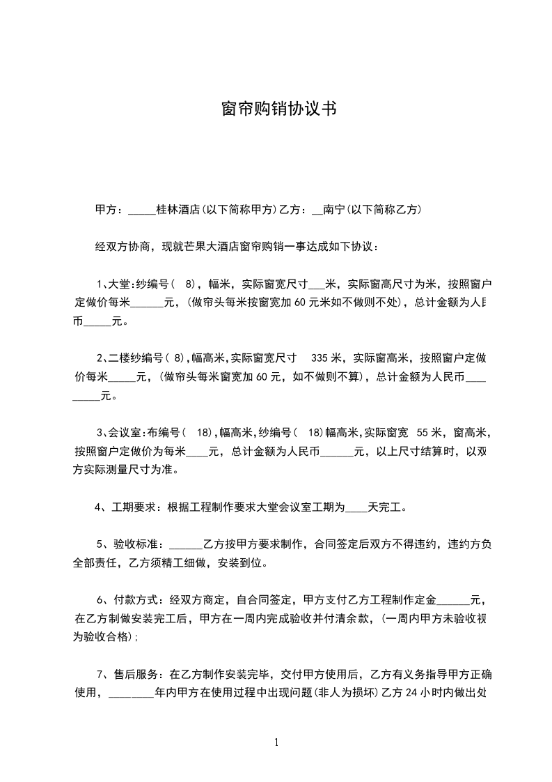 七、补充条款:窗帘高度实际:_______________米,超过_______________米的高度接高度接多少算多少。