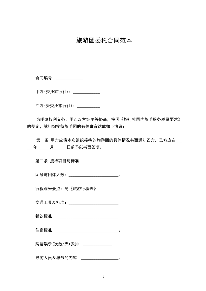 双方确定的委托接待项目与标准须和甲方与游客签订的《_________________省旅游合同》(国内)内容一致。
