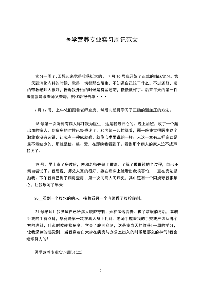 医学营养专业实习周记(二)