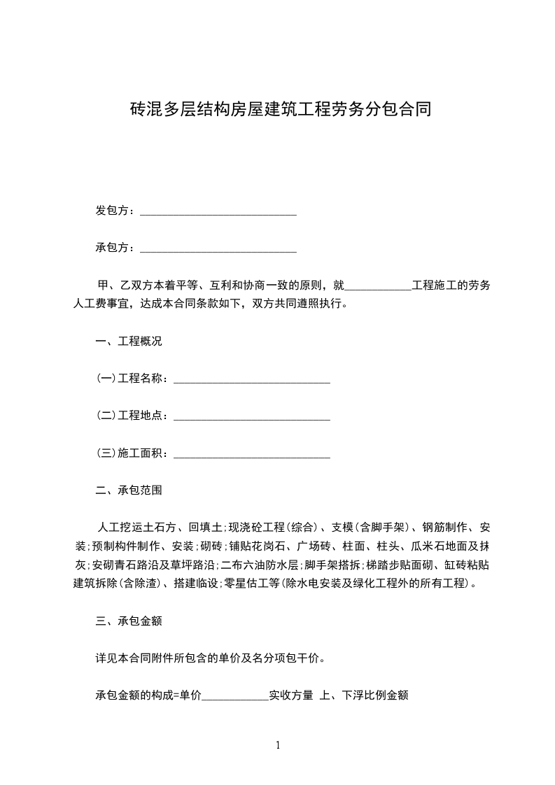 甲、乙双方本着平等、互利和协商一致的原则,就____________工程施工的劳务人工费事宜,达成本合同条款如下,双方共同遵照执行。