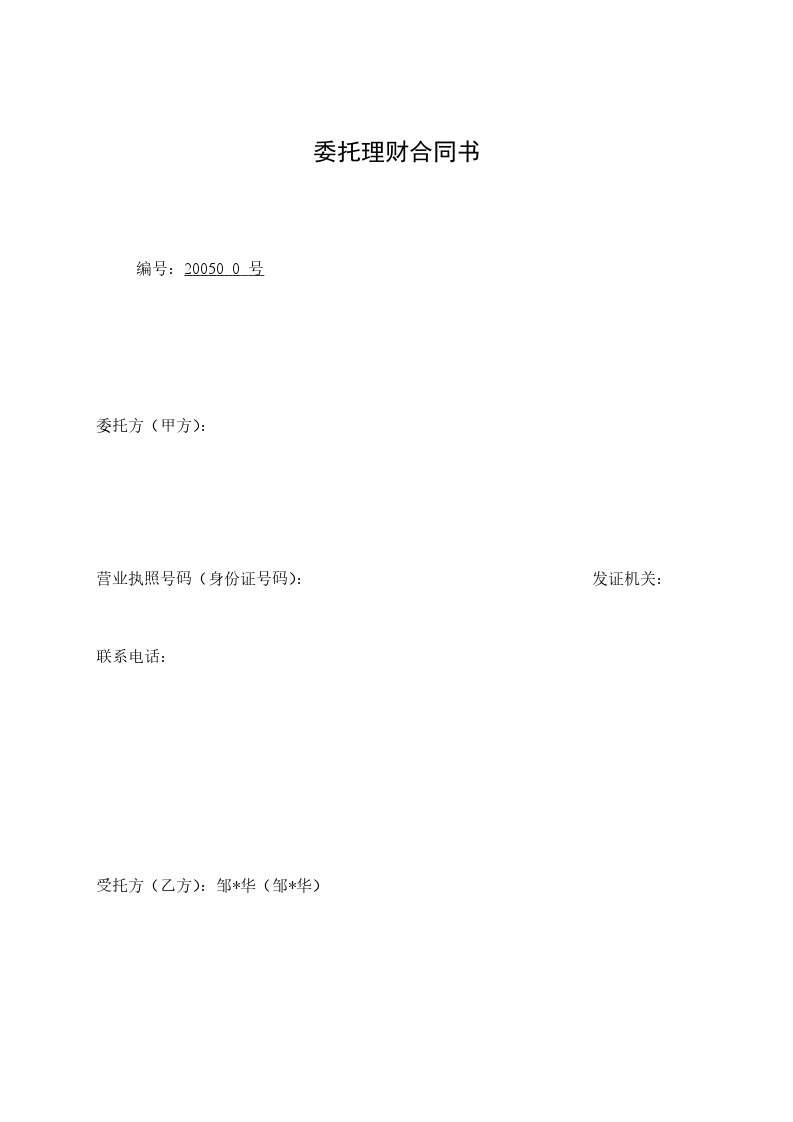 受托方(乙方):邹*华(邹*华)