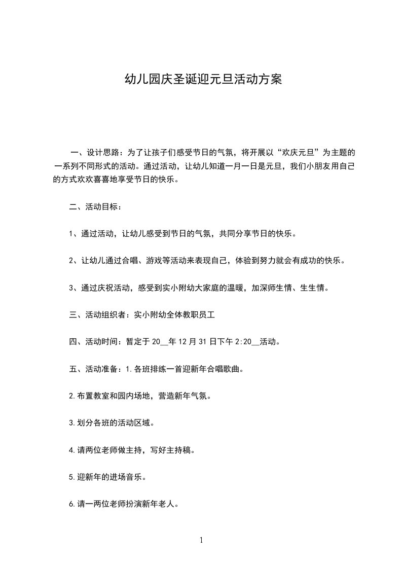 五、活动准备:1.各班排练一首迎新年合唱歌曲。