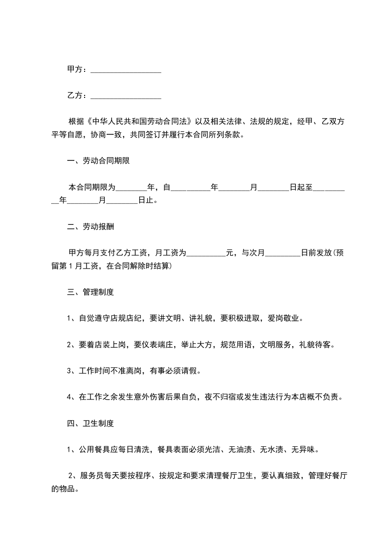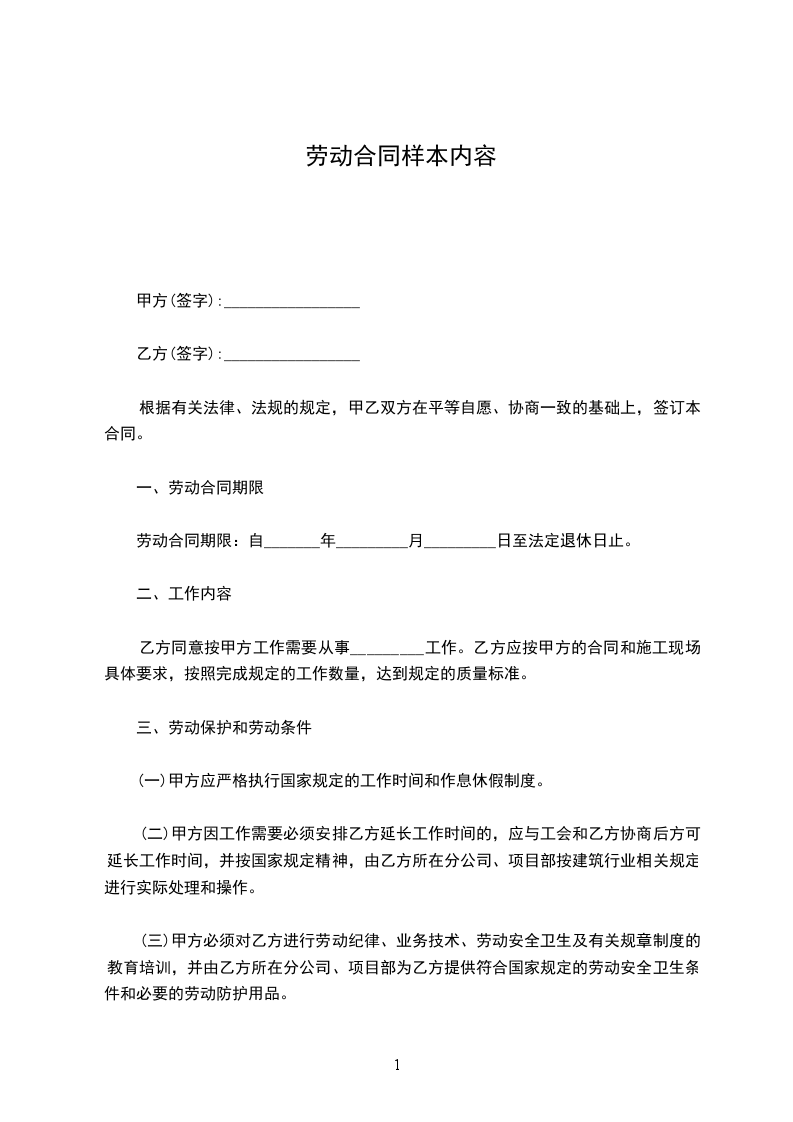 一、劳动合同期限