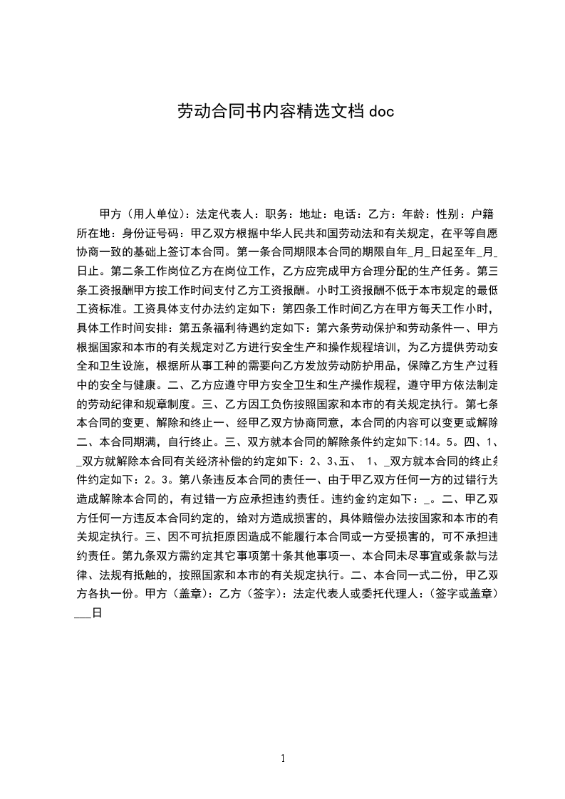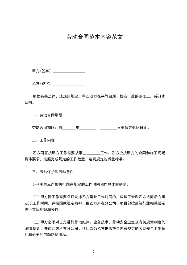 (一)符合下列情况,甲方可以解除劳动合同: