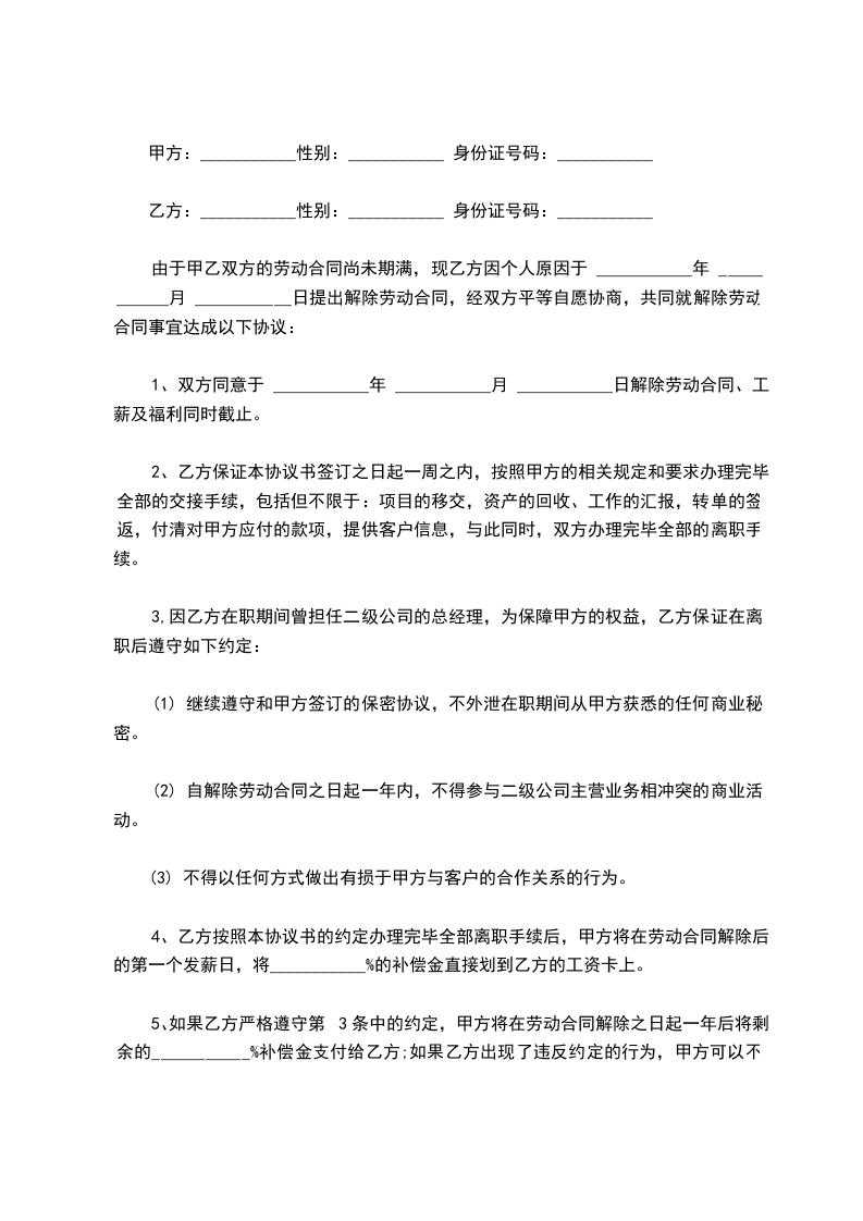 (二)符合下列情况,乙方可以解除劳动合同: