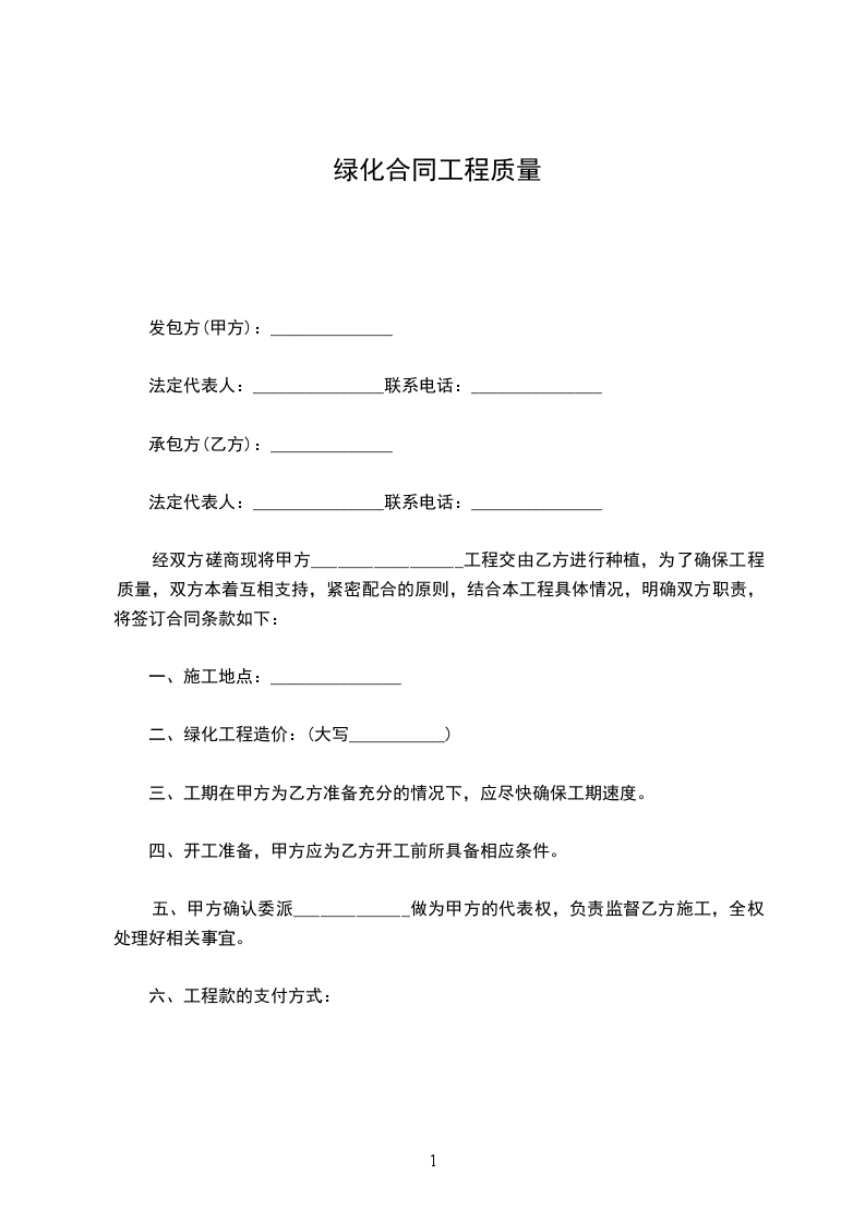 经双方磋商现将甲方_________________工程交由乙方进行种植,为了确保工程质量,双方本着互相支持,紧密配合的原则,结合本工程具体情况,明确双方职责,将签订合同条款如下: