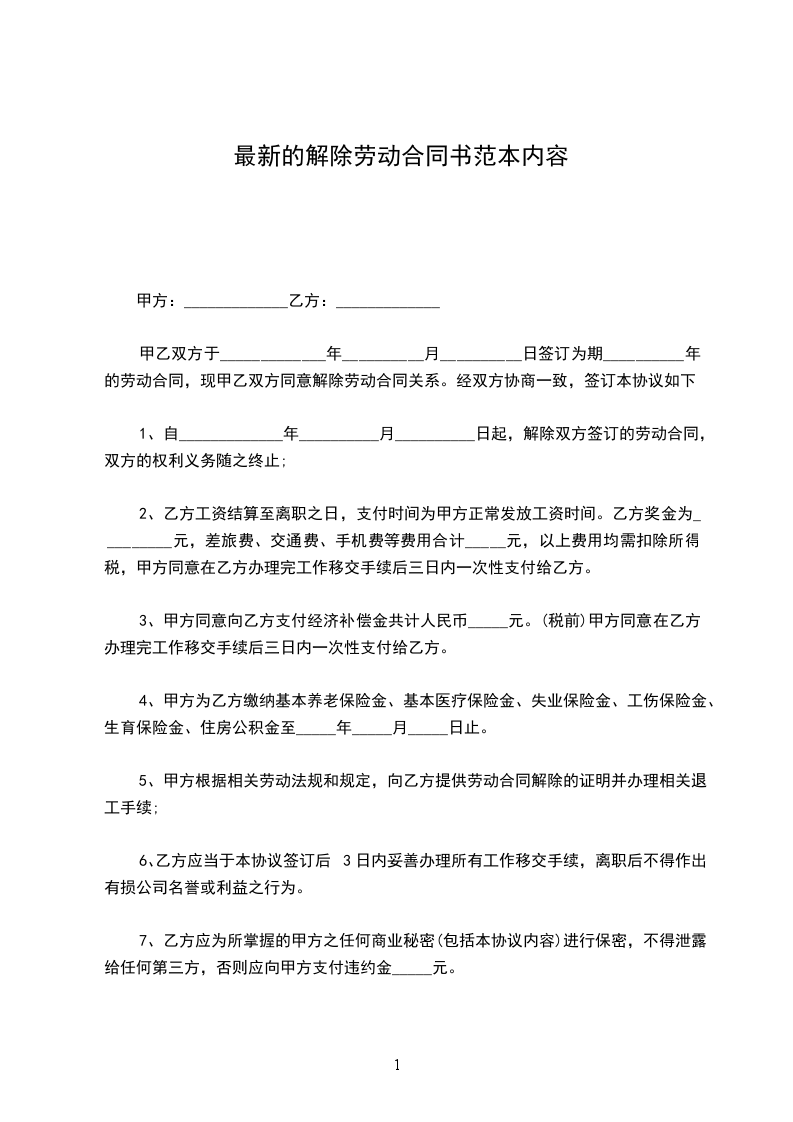 第五条 双方解除或终止劳动合同应按法定程序办理,甲方为乙方出具终止、解除劳动合同的通知书或相关证明。符合法律、法规规定的,支付乙方经济补偿。