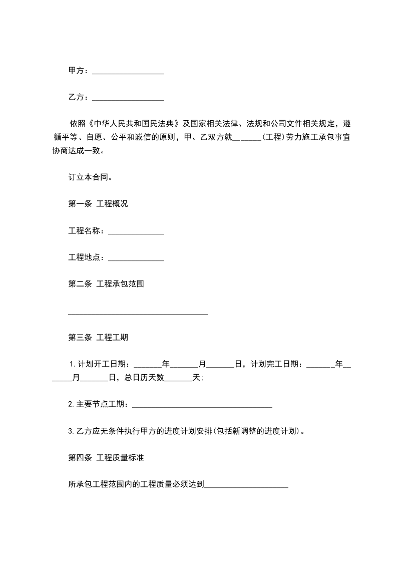 第一条 本合同期限自________年________月________日起至________年________月________日止。其中试用期为________年________月________日起至________年________月________日止。