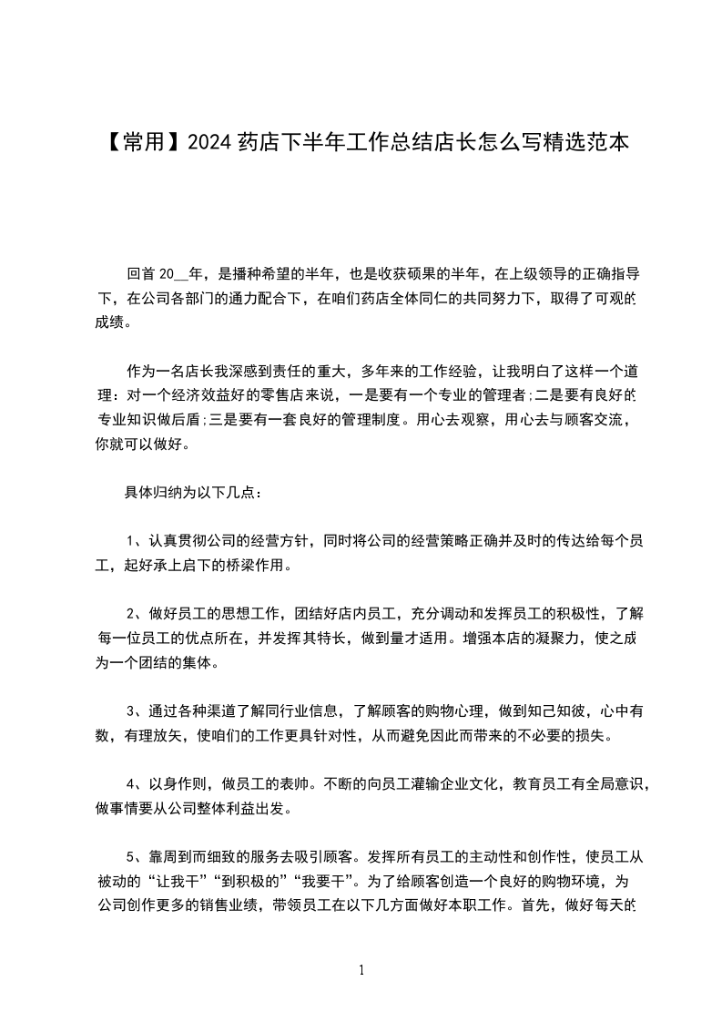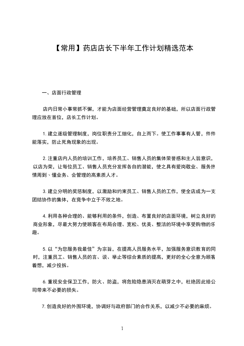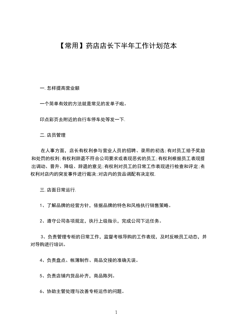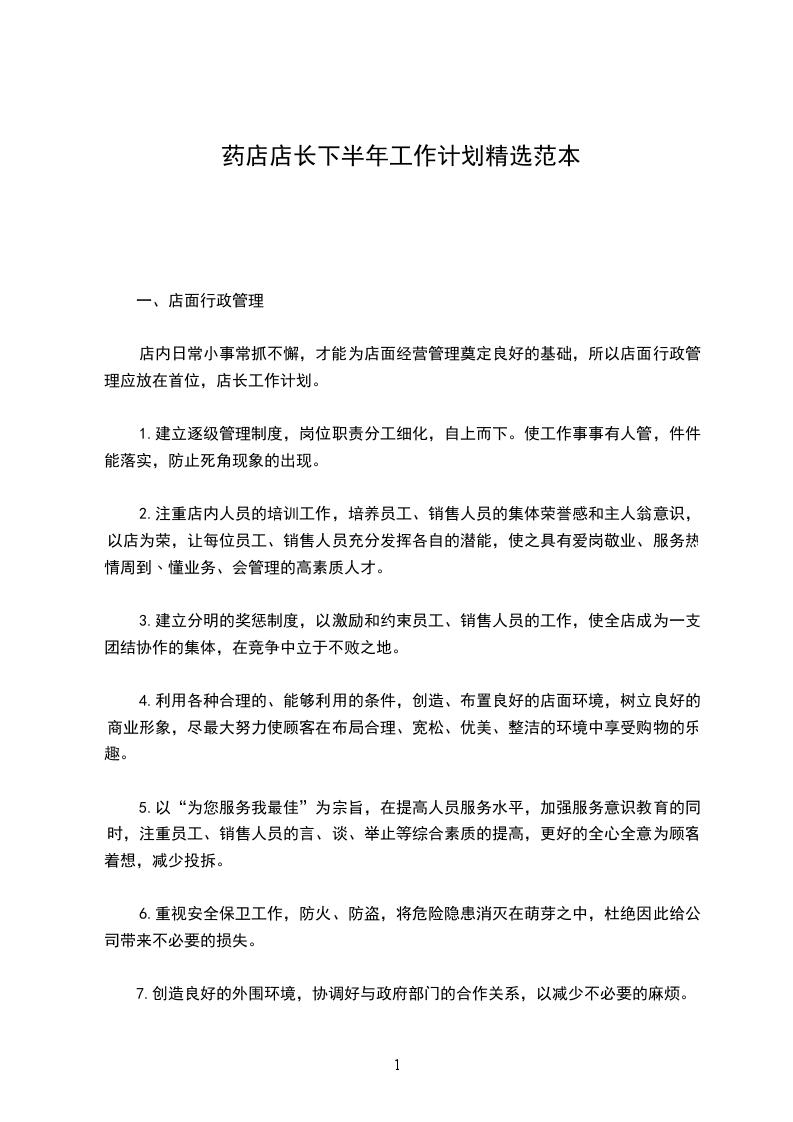 药店店长下半年工作计划篇三