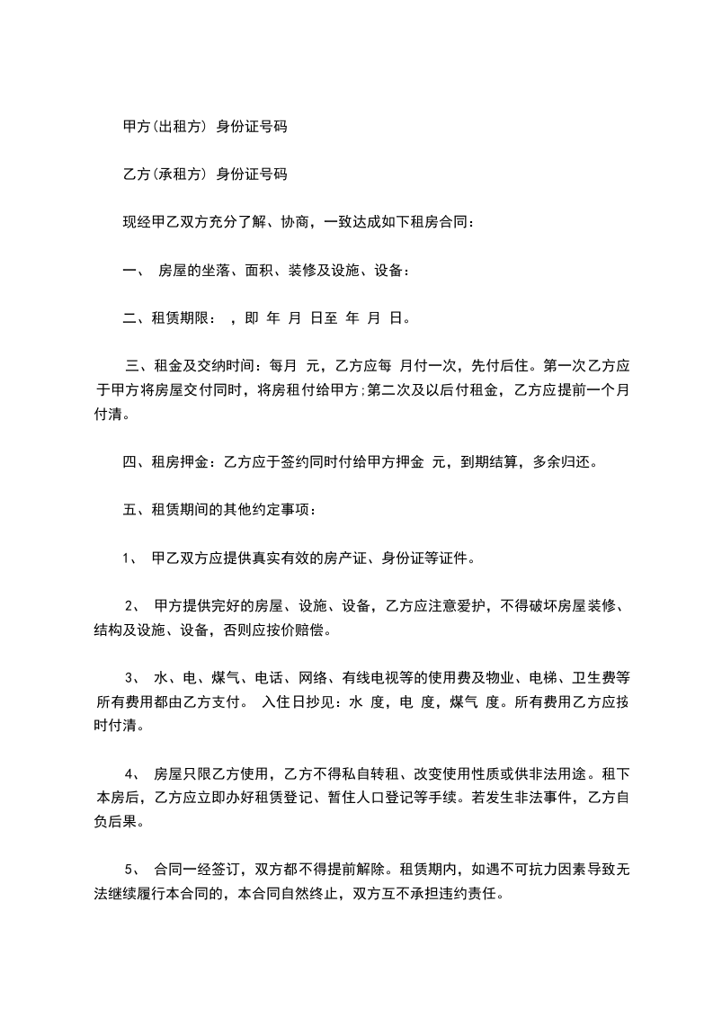 六、甲方应保证房屋在协议签订之前不拖欠任何费用,并且房屋不得有损坏,否则甲方须负责修复。