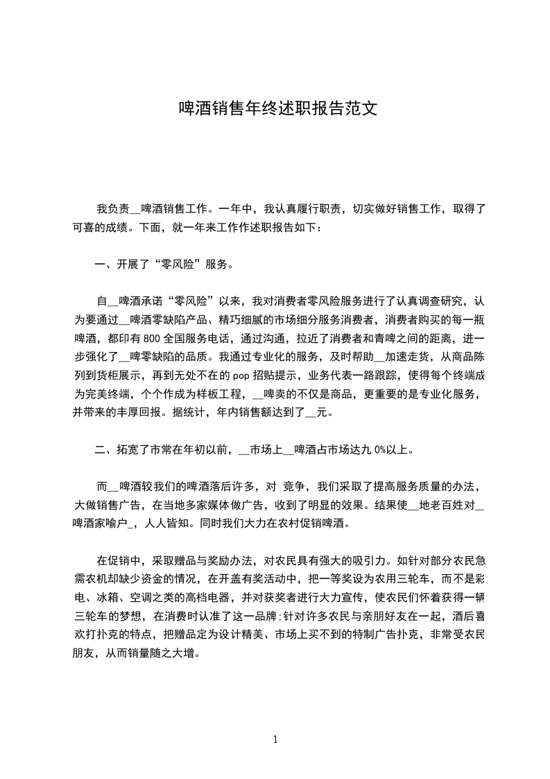 __年以来,我负责啤酒销售工作。一年中,我认真履行职责,切实做好销售工作,取得了可喜的成绩。下面,就一年来工作小结如下: