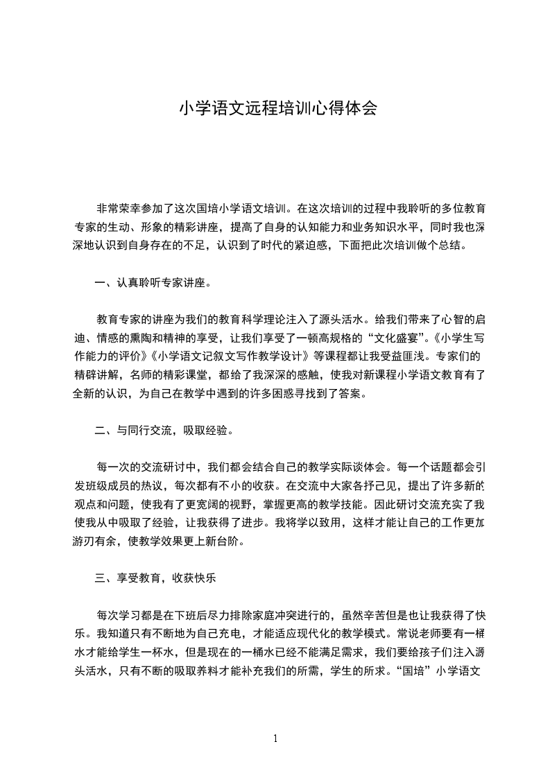 这次培训活动,通过网络论坛实现了教师与课程专家的面对面交流,解决了教师教学中的实际问题,增强了培训的针对性和实效性。培训中,讲座、课例、网络交流、师生互动等新颖、丰富的形式,为参训教师打开了一扇学科理念、理论、实践活动的窗口,增强了培训的实效性。学习中,我坚持与其他学员保持密切联系,按时交流各自的感受与作业,使自己能博采众长、开阔视野,在不断的交流学习中成熟起来。