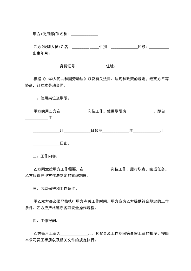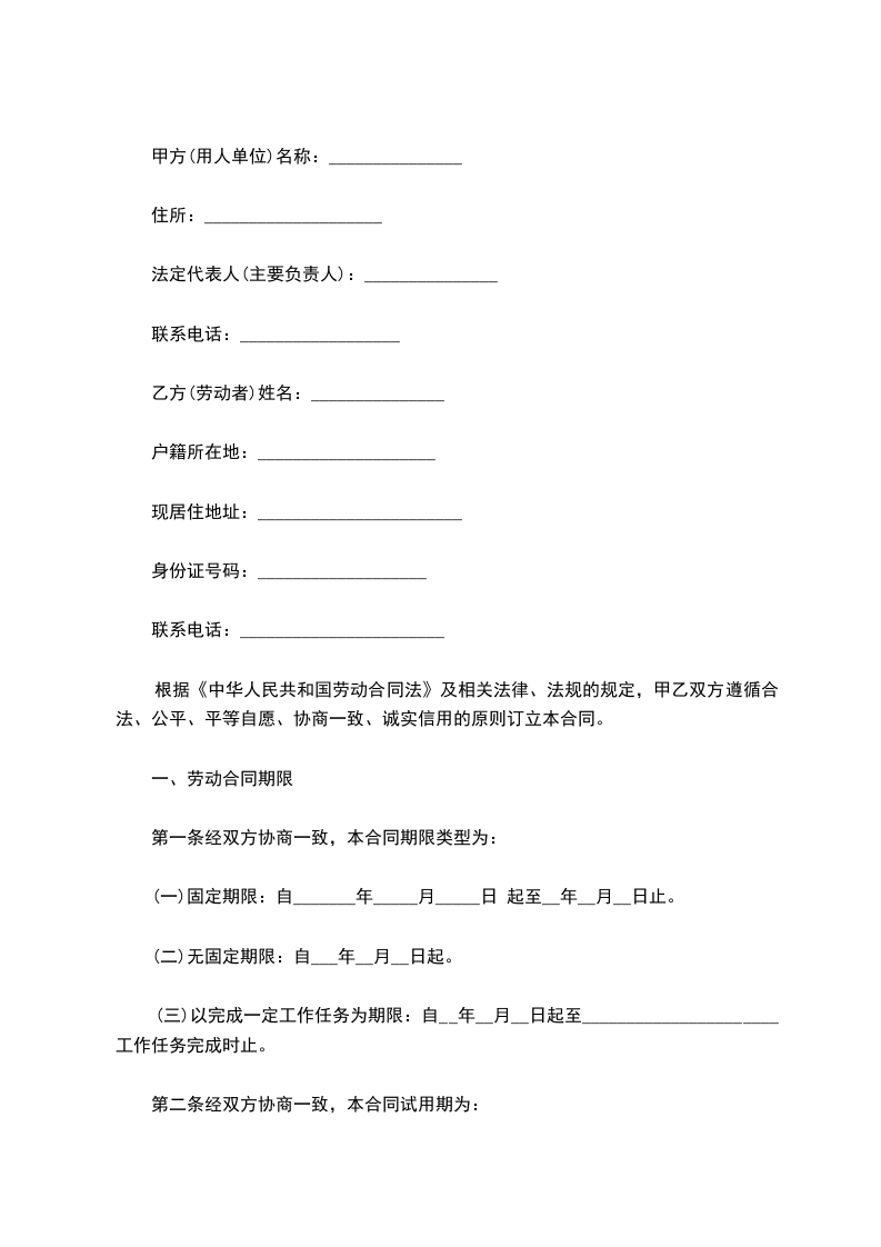 一、劳动合同期限