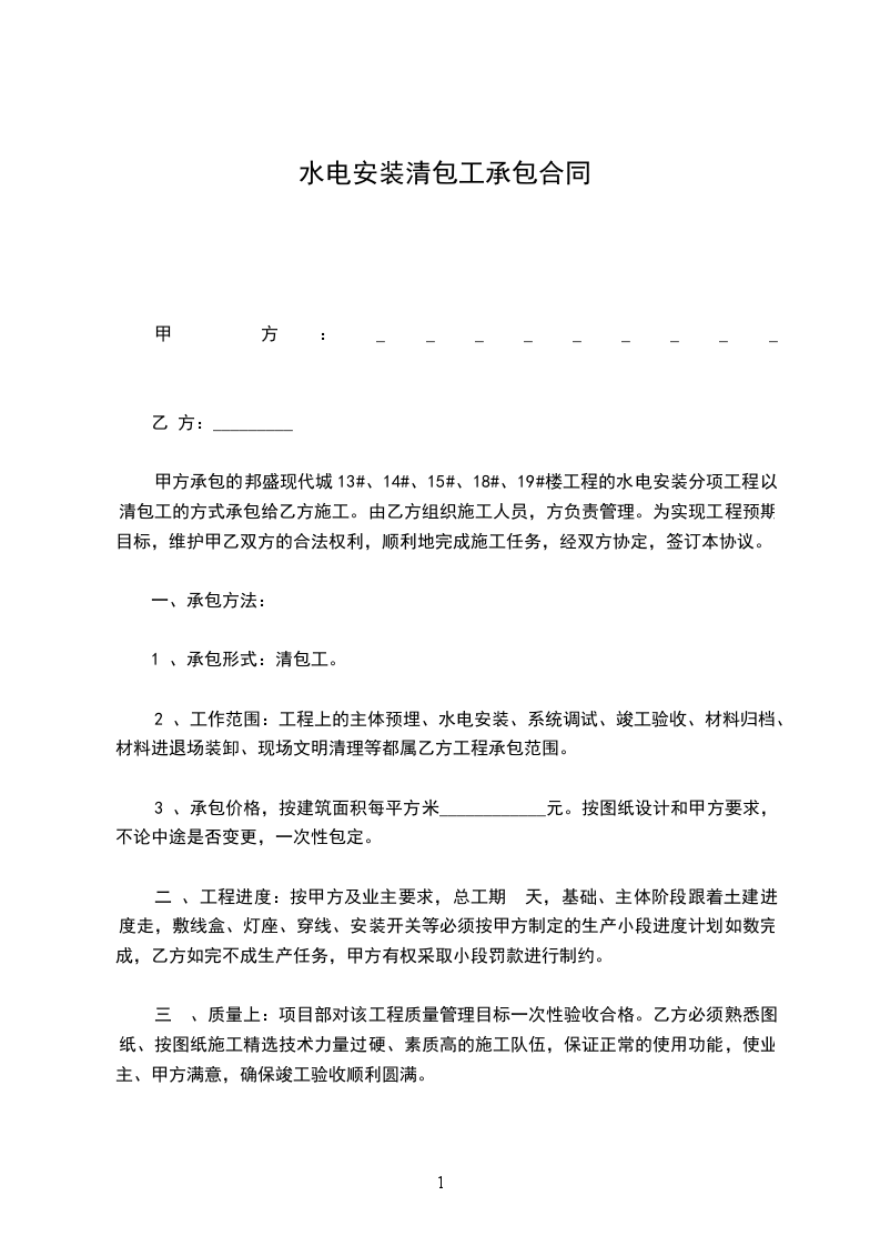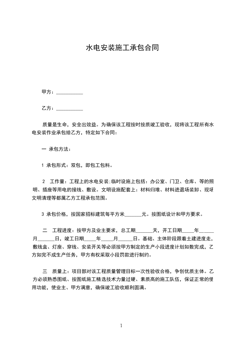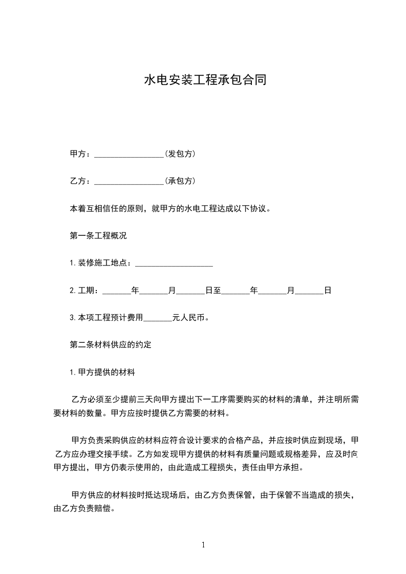 本着互相信任的原则,就甲方的水电工程达成以下协议。