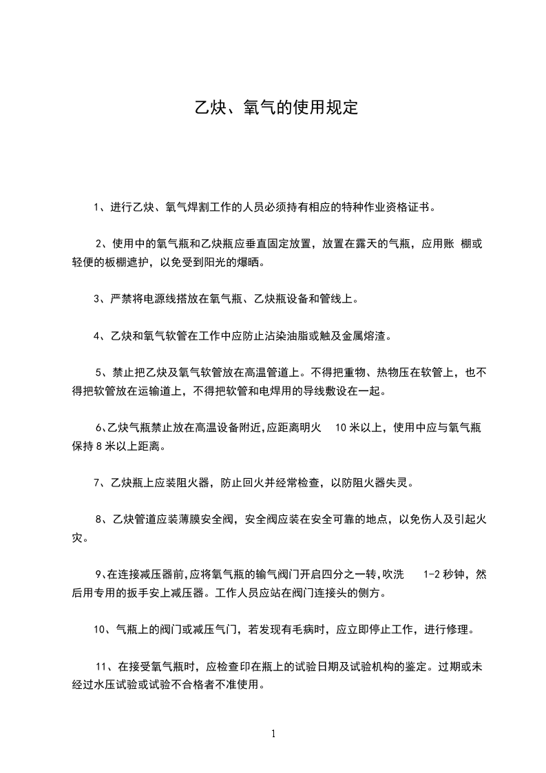 12、运到现场的氧气瓶,必须验收检查。如有油脂痕迹,应立即擦拭干净;如缺少保险帽或气门上缺少封口螺丝或有其它缺陷,应在瓶上注明注意!瓶内装满氧气,退回发货单位。