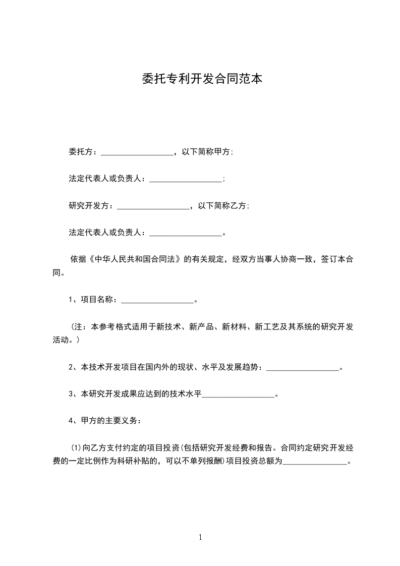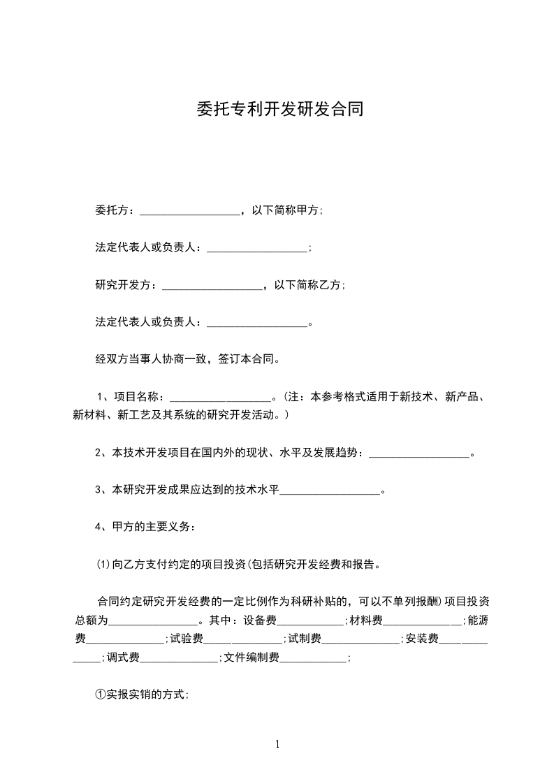(注:本参考格式适用于新技术、新产品、新材料、新工艺及其系统的研究开发活动。)