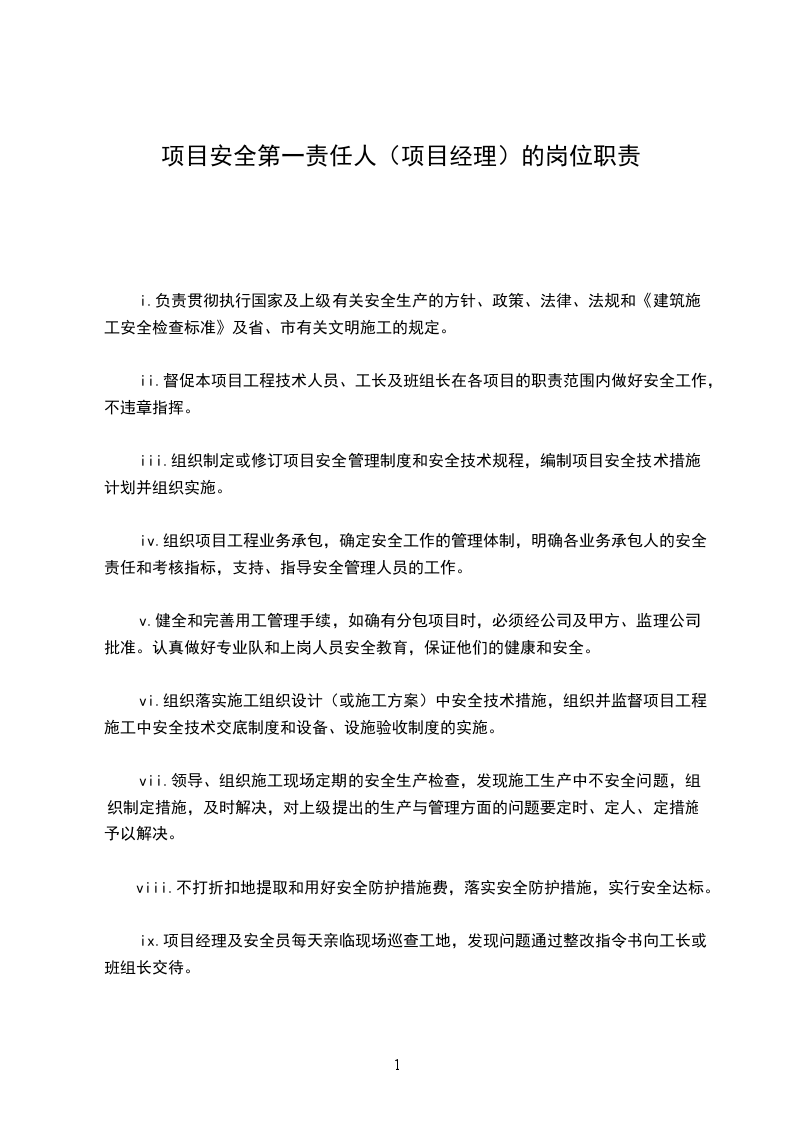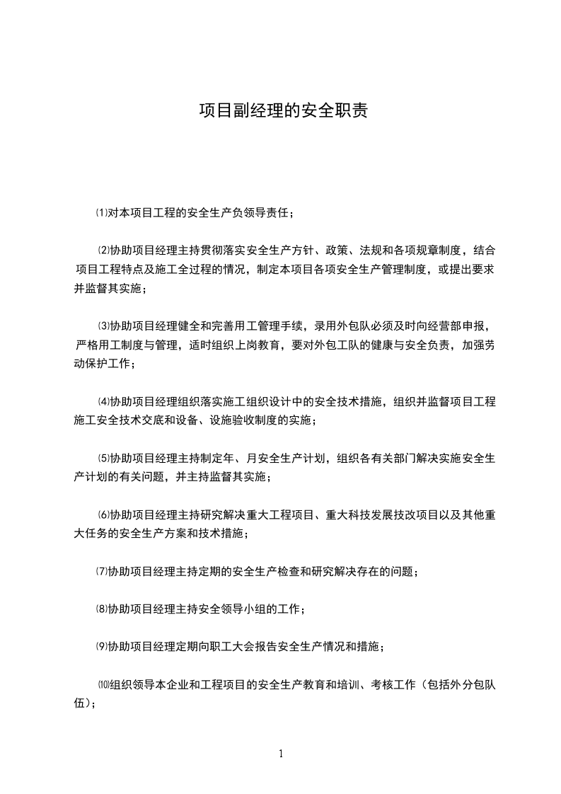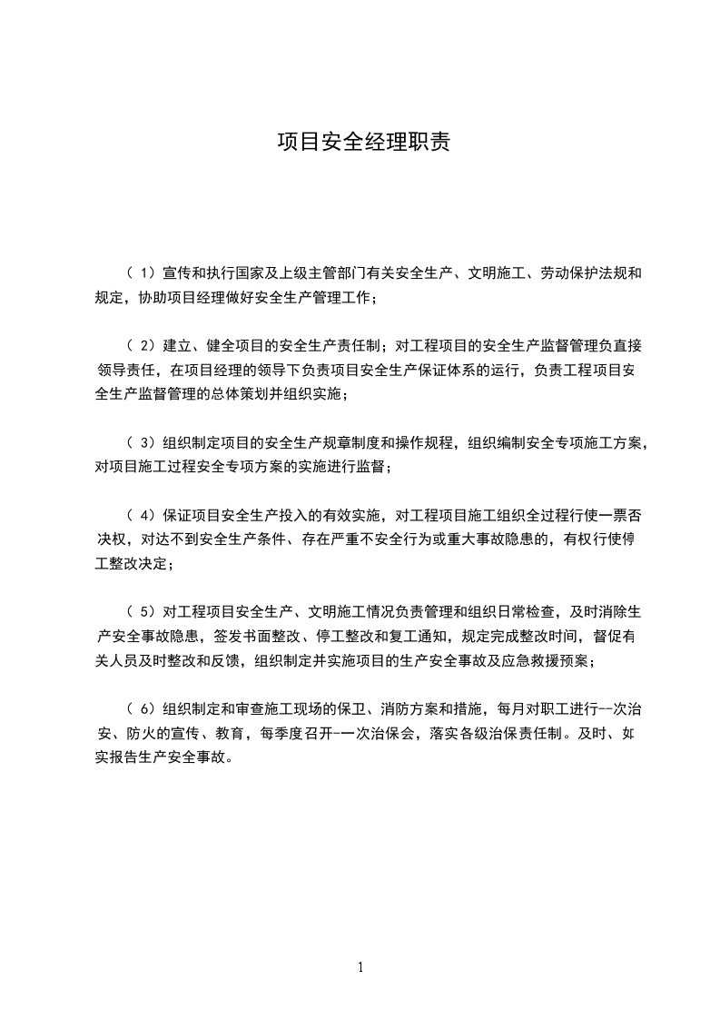 (1)宣传和执行国家及上级主管部门有关安全生产、文明施工、劳动保护法规和规定,协助项目经理做好安全生产管理工作;