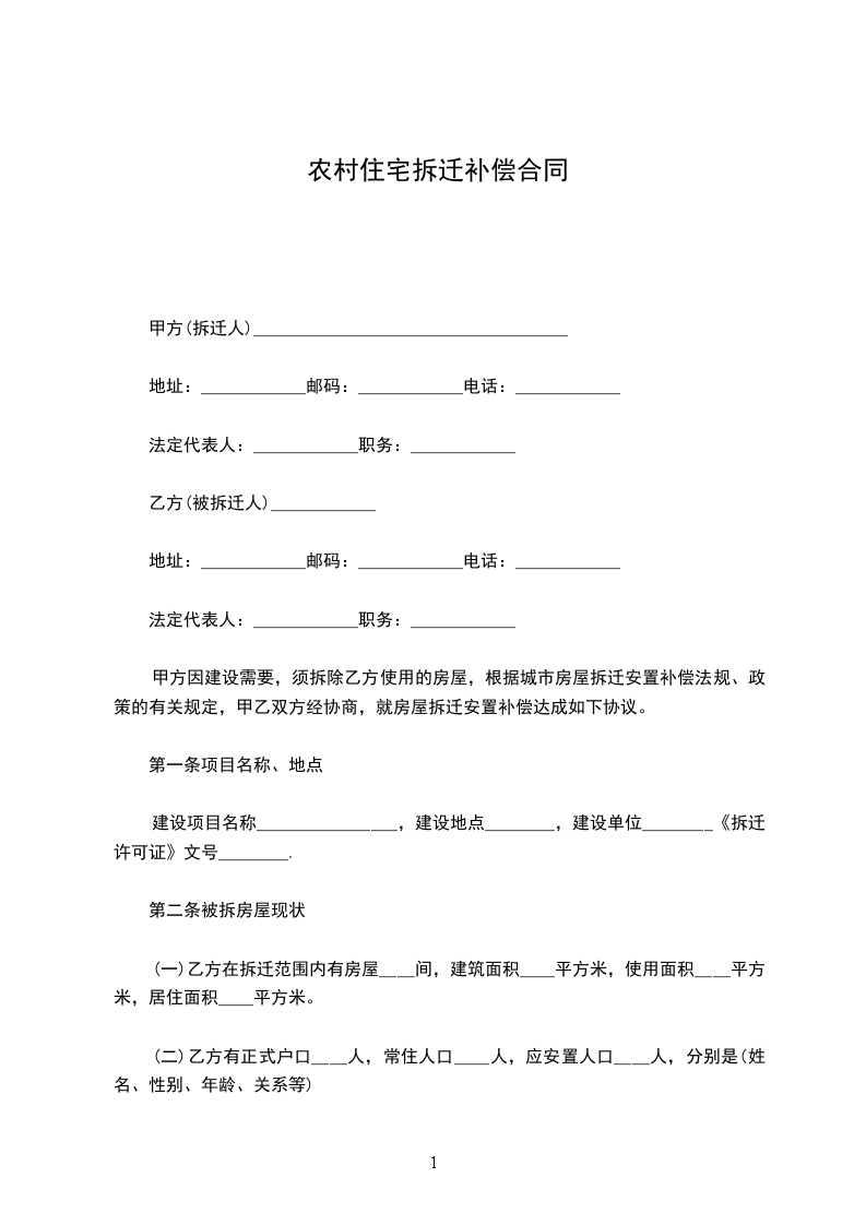(二)乙方有正式户口______人。常住人口______人,应安置人口______人.分别是(姓名、性别、年龄、关系等(三)被拆迁房屋的产权属于________________。