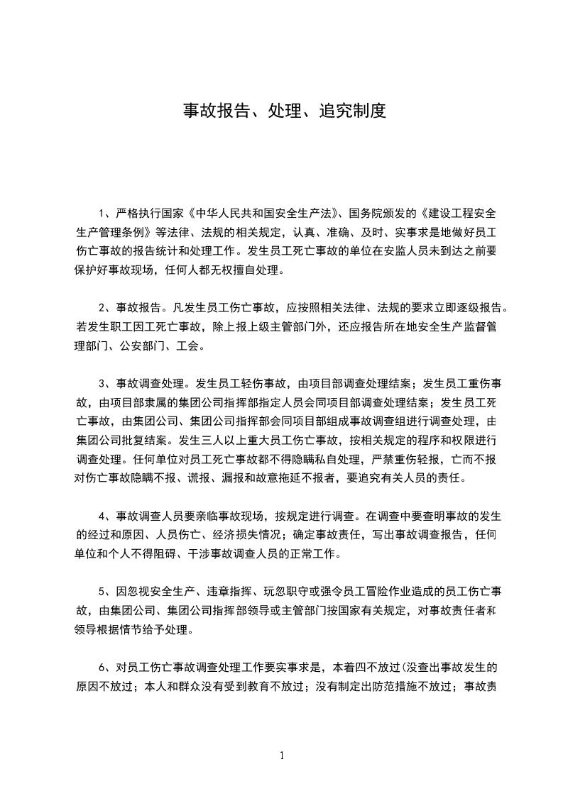 1、严格执行国家《中华人民共和国安全生产法》、国务院颁发的《建设工程安全生产管理条例》等法律、法规的相关规定,认真、准确、及时、实事求是地做好员工伤亡事故的报告统计和处理工作。发生员工死亡事故的单位在安监人员未到达之前要保护好事故现场,任何人都无权擅自处理。