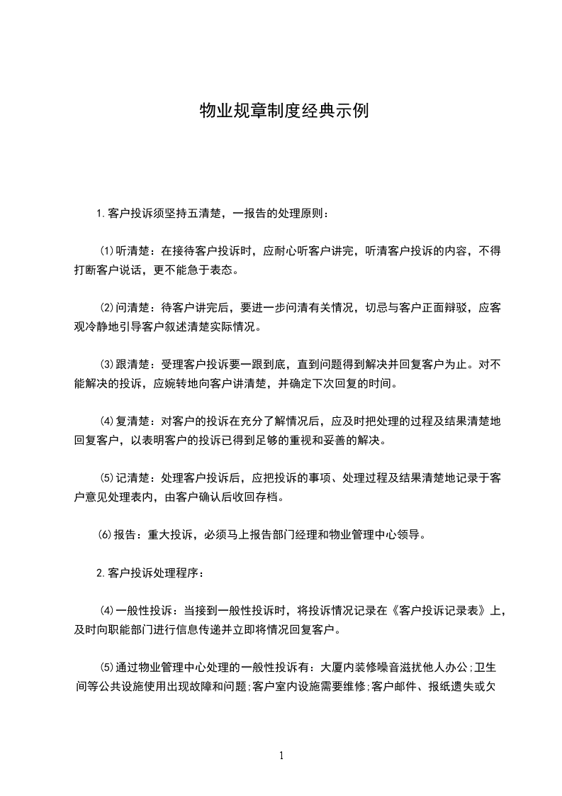 (6)报告:重大投诉,必须马上报告部门经理和物业管理中心领导。