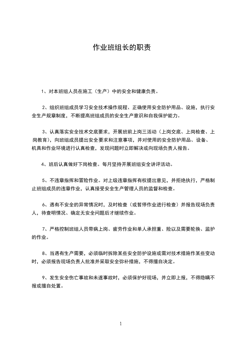 1、对作业队、班组工人在生产中的安全和健康负责,认真执行本单位安全生产规章制度和安全操作规程,检查督促作业队、班组工人正确使用各种劳动防护用品。