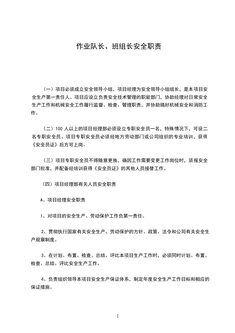 1、对项目的安全生产、劳动保护工作负第一责任。