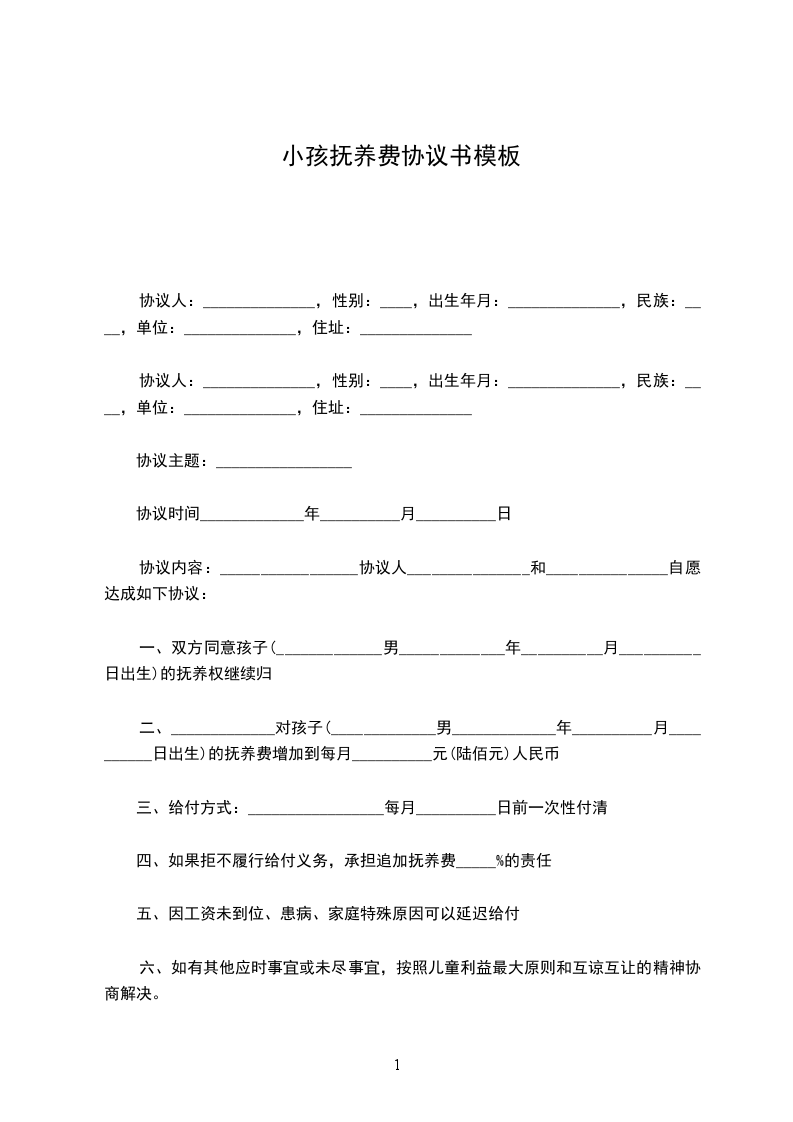 协议人:______________,性别:____,出生年月:______________,民族:____,单位:______________,住址:______________