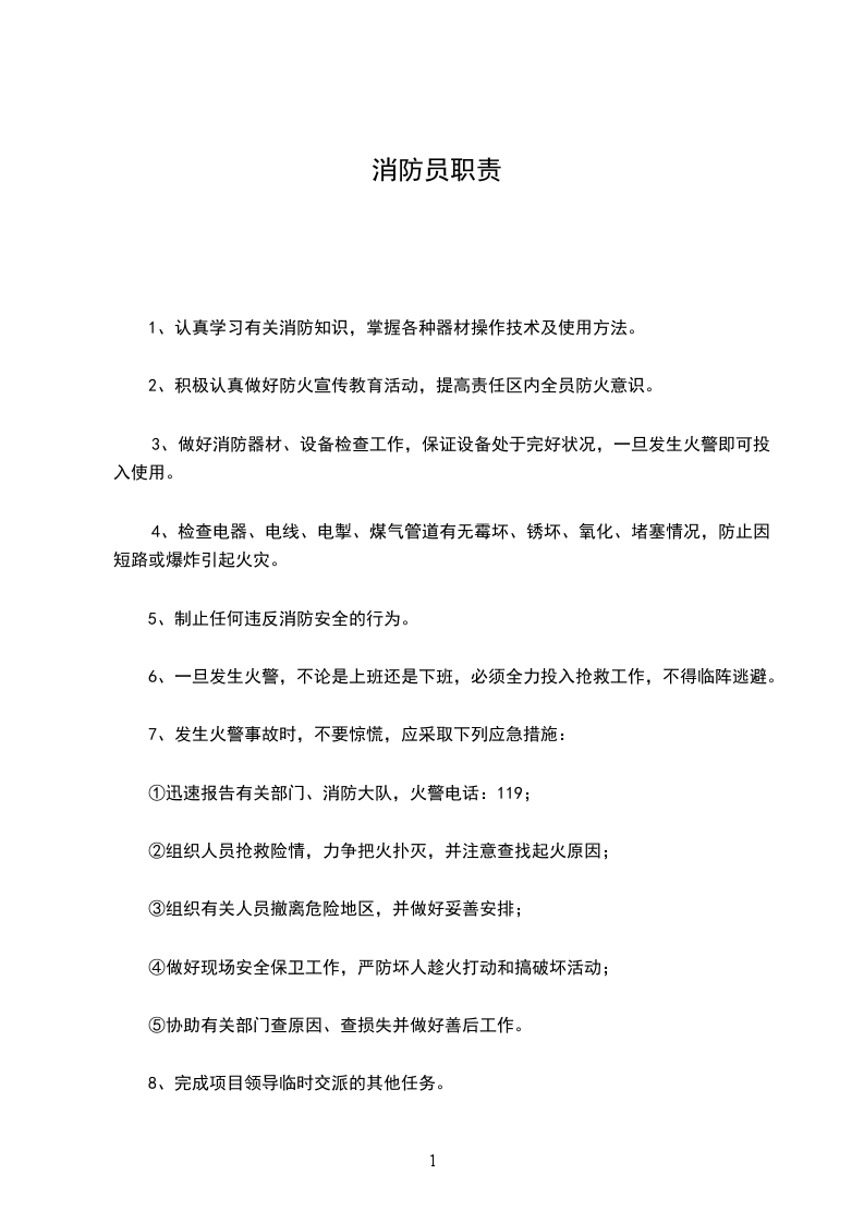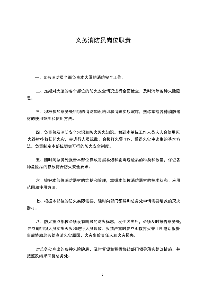 2、积极认真做好防火宣传教育活动,提高责任区内全员防火意识。