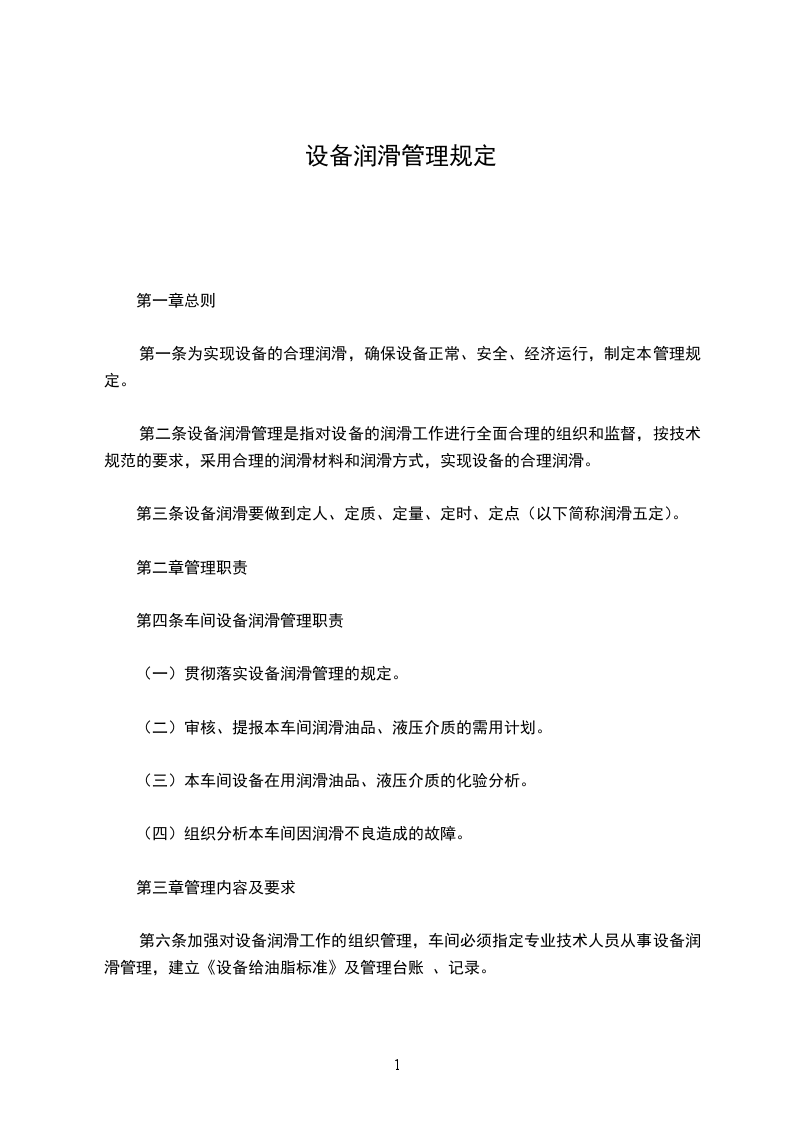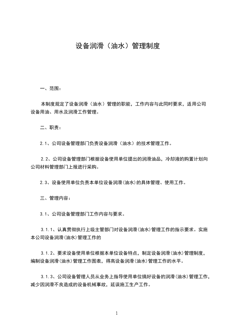 3.1.1、认真贯彻执行上级主管部门对设备润滑(油水)管理工作的指示要求。实施本公司设备润滑(油水)管理工作的