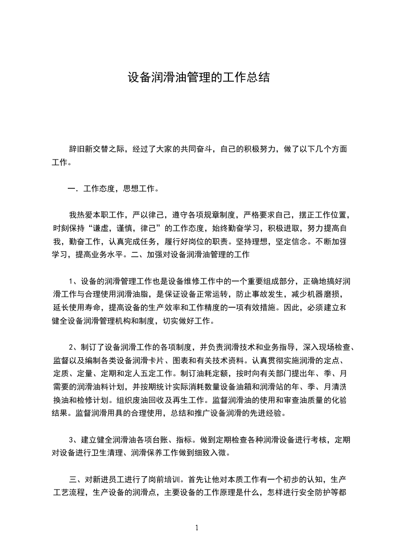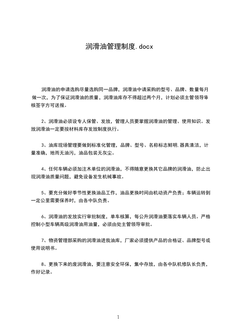 本制度规定了设备润滑(油水)管理的职能,工作内容与此同时要求,适用公司设备用油、用水及润滑工作管理。