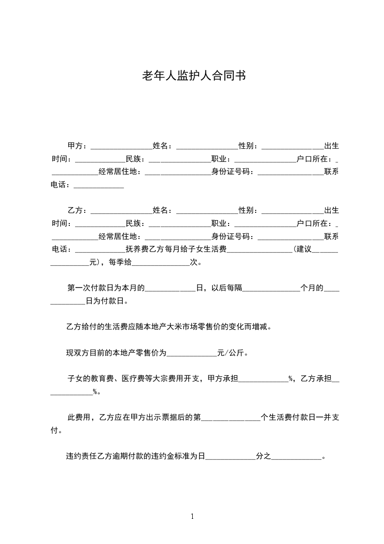 老年人监护人协议书