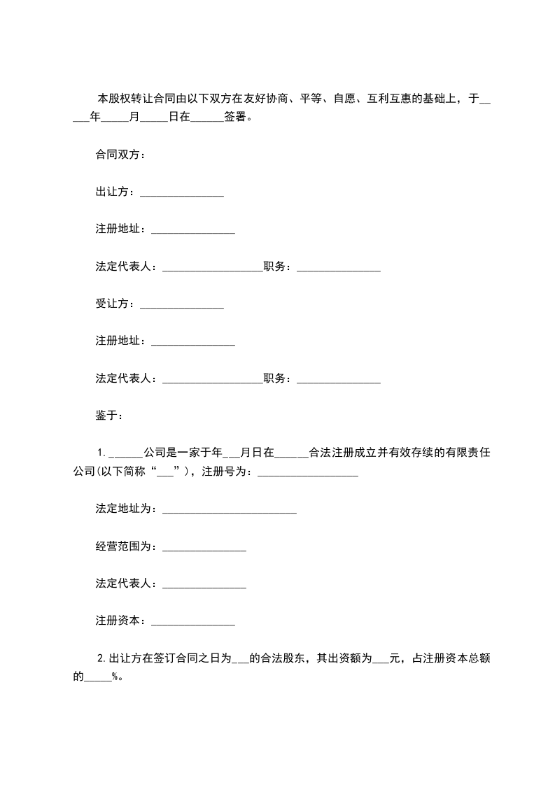 1、甲方将其持有该公司____%的股权转让给乙方;